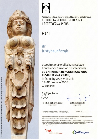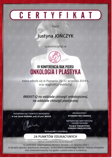Jestem miesiąc po operacji powiększania piersi i nie mogłam wybrać lepiej. Konsultowałam się z wieloma chirurgami ale to Pani doktor przejęła całe moje zaufanie i oczywiście miałam swoje widzi mi się, ale posłuchałam się Pani doktor i dobrała najlepszą technikę z której jestem zachwycona. Jedyne co żałuję, ze nie poznałam dr Jończyk wcześniej. Kontakt pooperacyjny bezproblemowy i same wizyty przed i po operacji przebywały w świetnej atmosferze. Bardzo dziękuję i polecam wszystkim. Jak cokolwiek to tylko do doktor.