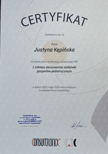 Bardzo pozytywne wrażenia z wizyty dziecka u lek. Justyna Kępińska: miło, fachowo i rzeczowo. Dziękujemy