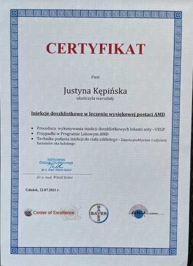 - wykonuję iniekcje anty-Vegf do oczu u dzieci z retinopatią wcześniaczą