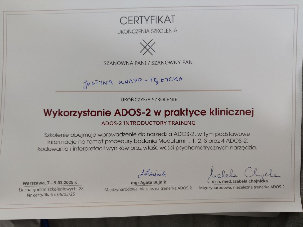 Czy Justyna Knapp-Tężycka przyjmuje online, bez konieczności pojawiania się w placówce?Nie, w tym momencie Justyna Knapp-Tężycka nie oferuje konsultacji online.