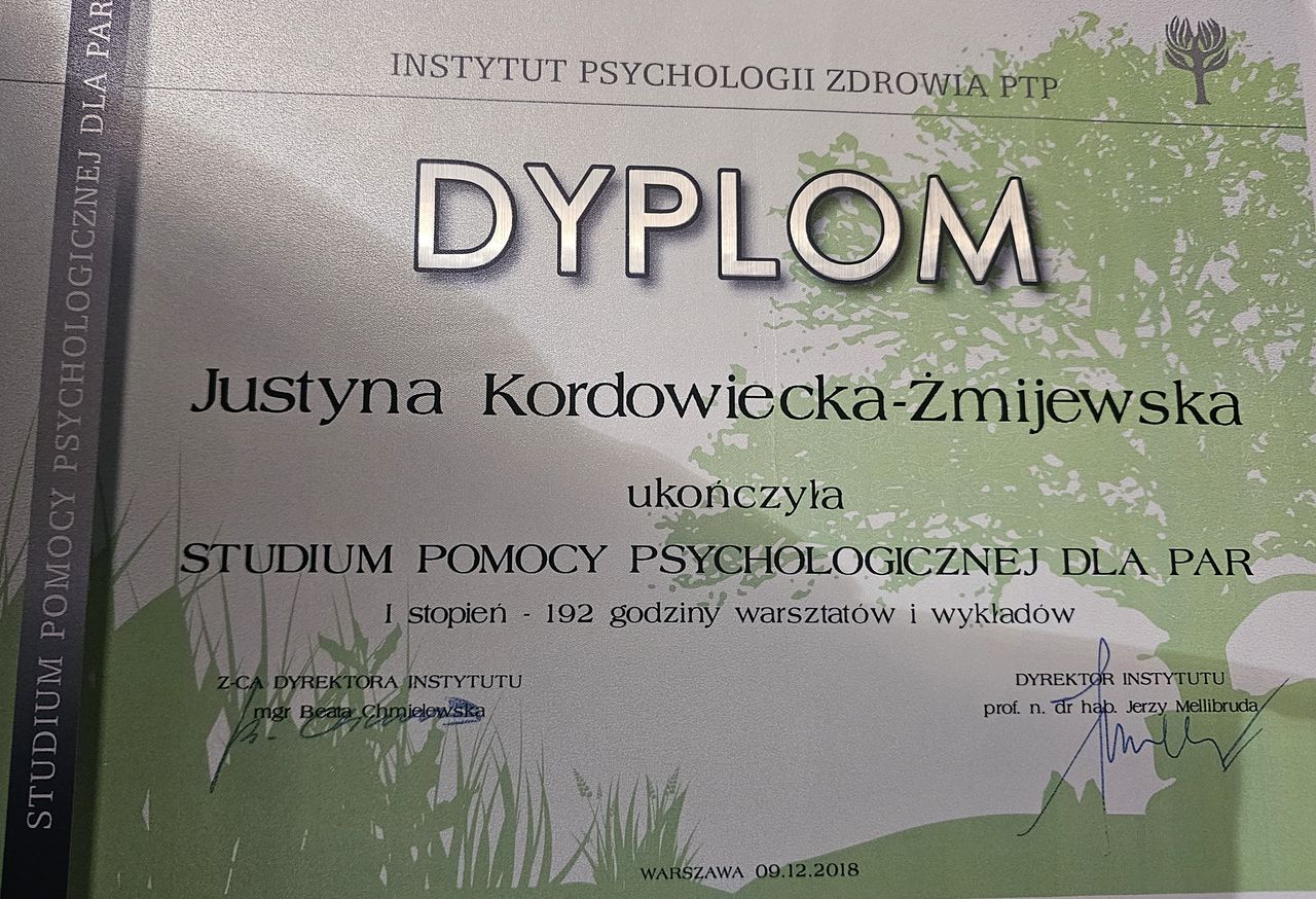 Pani Justyna Kordowiecka-Żmijewska specjalizuje się także w pracy z parami, pomagając w rozwiązaniu kryzysów w związku, poprawie komunikacji, budowaniu intymności i zaufania. Jej podejście opiera się na głębokim zrozumieniu potrzeb obu stron, co pozwala na stworzenie harmonijnego środowiska, sprzyjającego wzrostowi relacji.