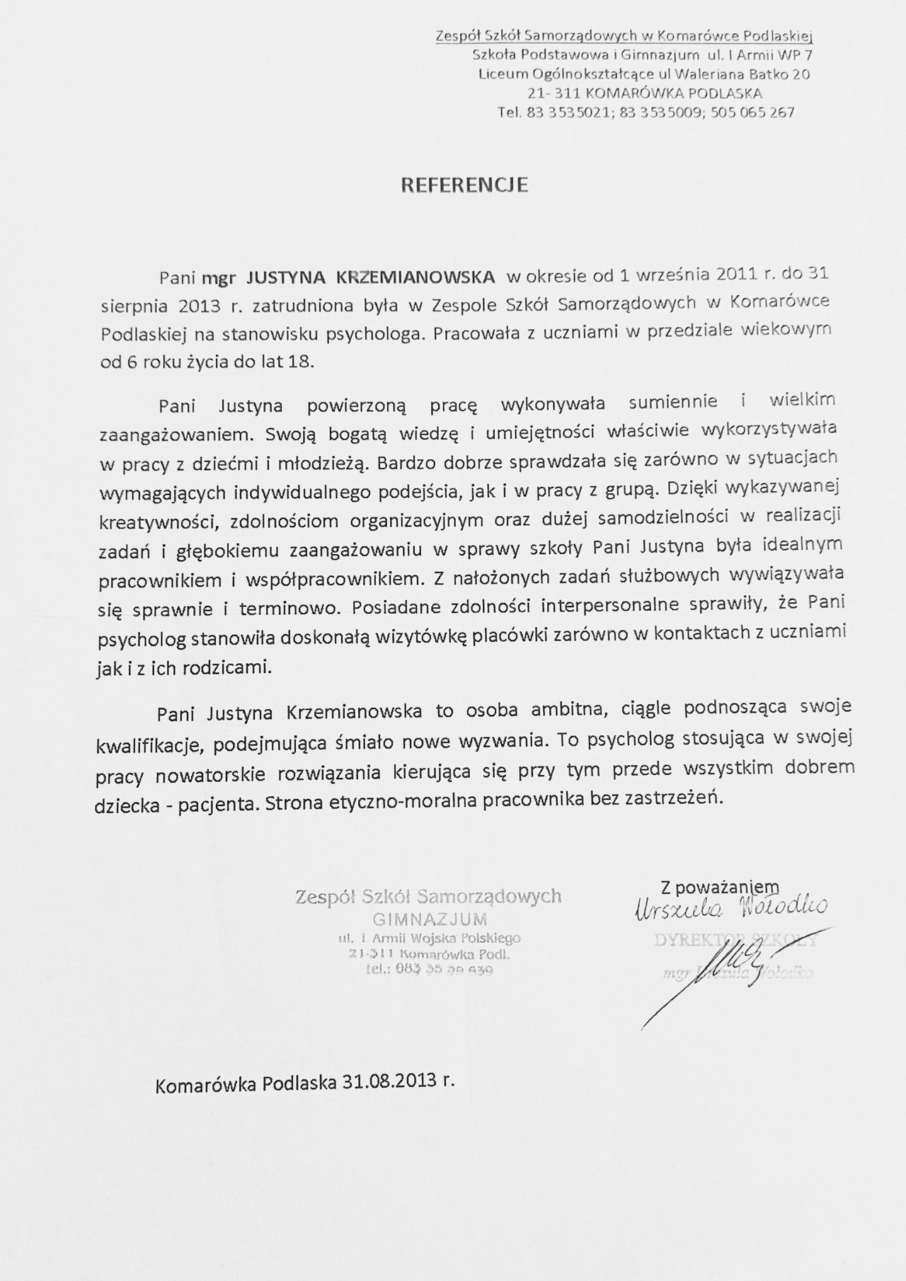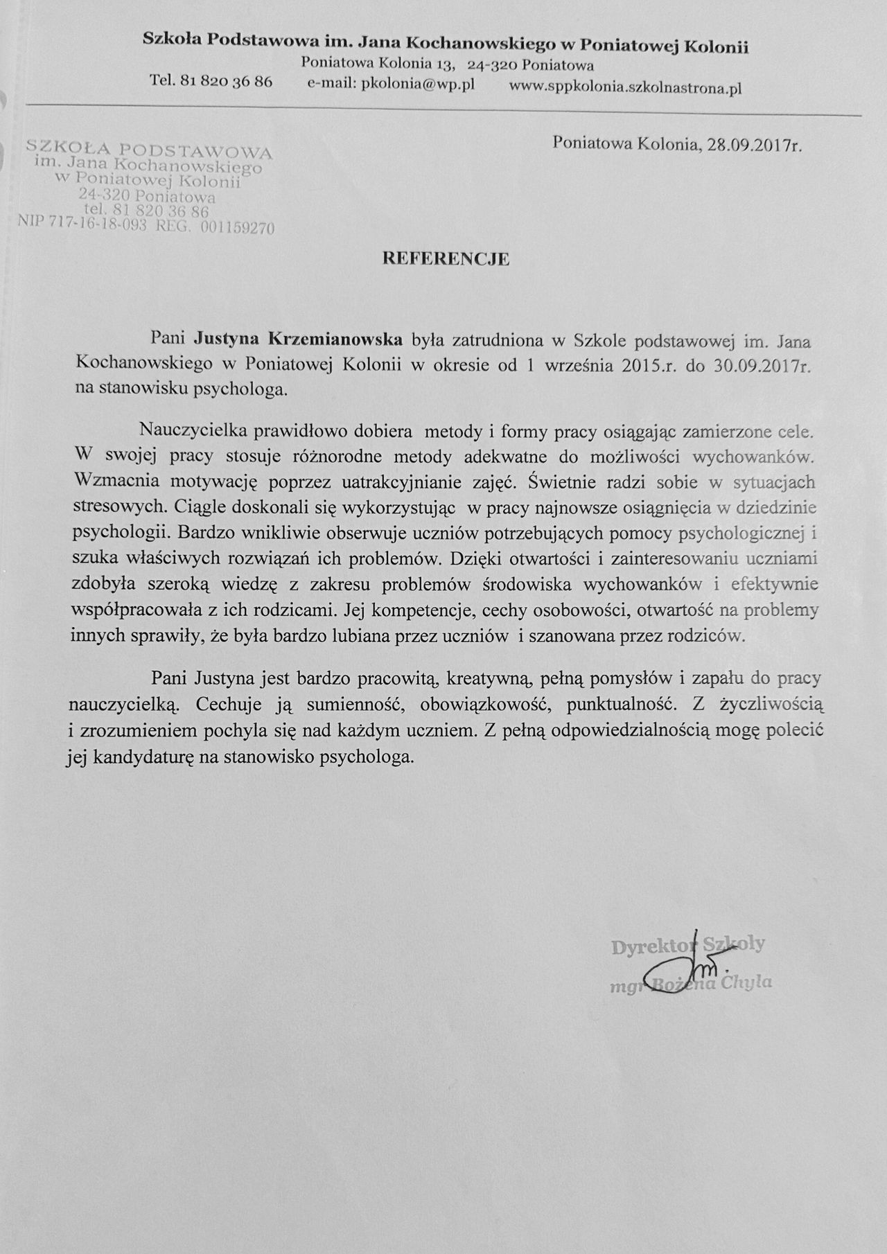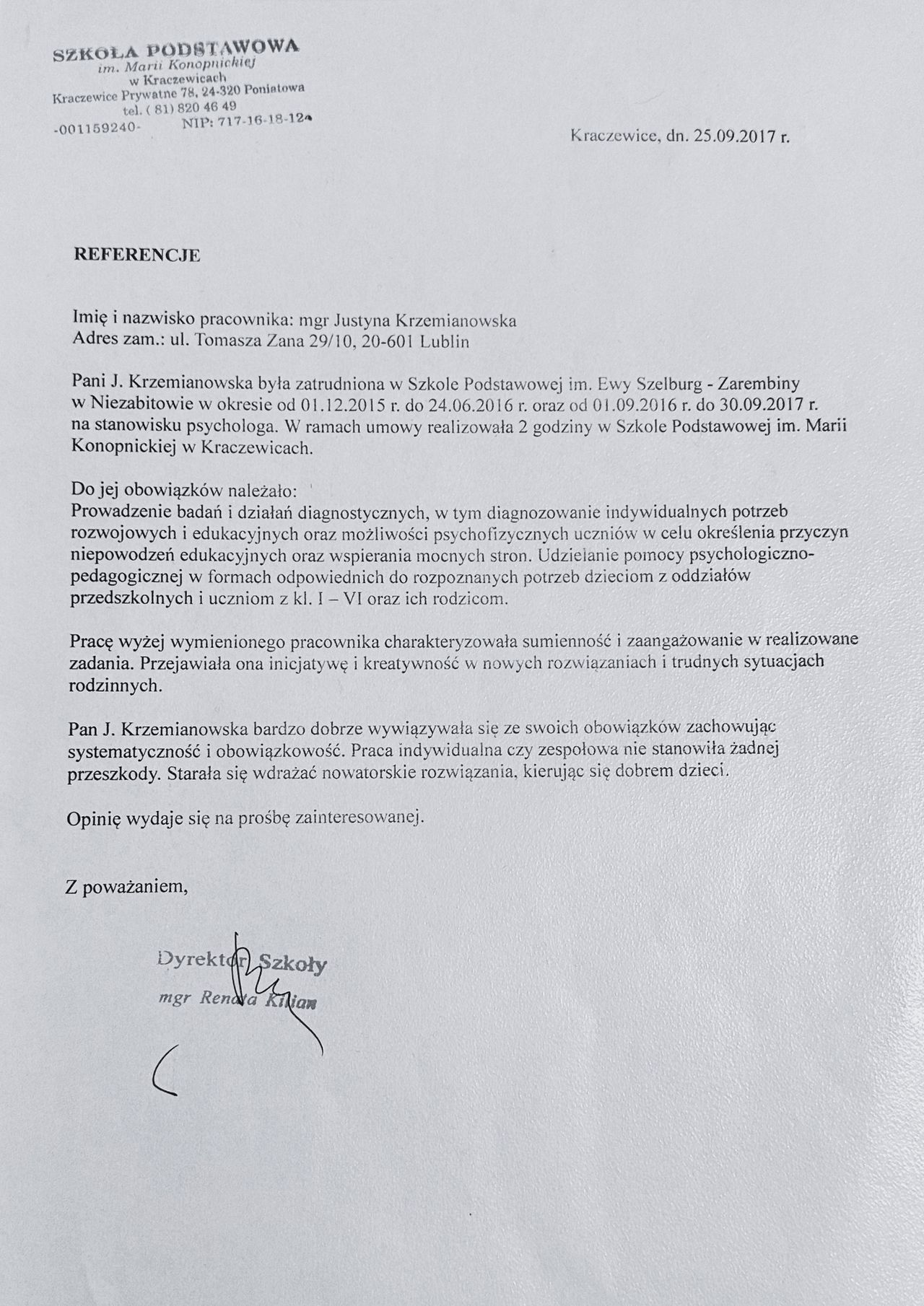 Jaki jest zakres porad oferowanych przez Justyna Krzemianowska?Justyna Krzemianowska to psycholog, psychotraumatolog. Na podstawie swojego doświadczenia i wykształcenia Justyna Krzemianowska oferuje usługi takie jak: poradnictwo psychologiczne dla rodziców, Konsultacja psychologiczna dla dzieci i młodzieży.