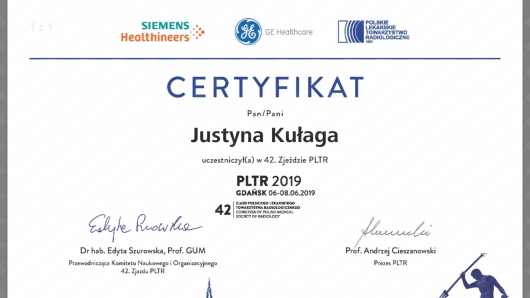 Specjalizację z Radiologii i Diagnostyki Obrazowej zdobyłam w szpitalach o szerokim profilu medycznym (Szpital Miejski w Gdyni, Szpital Wojewódzki w Gdańsku ( obecnie Affidea).