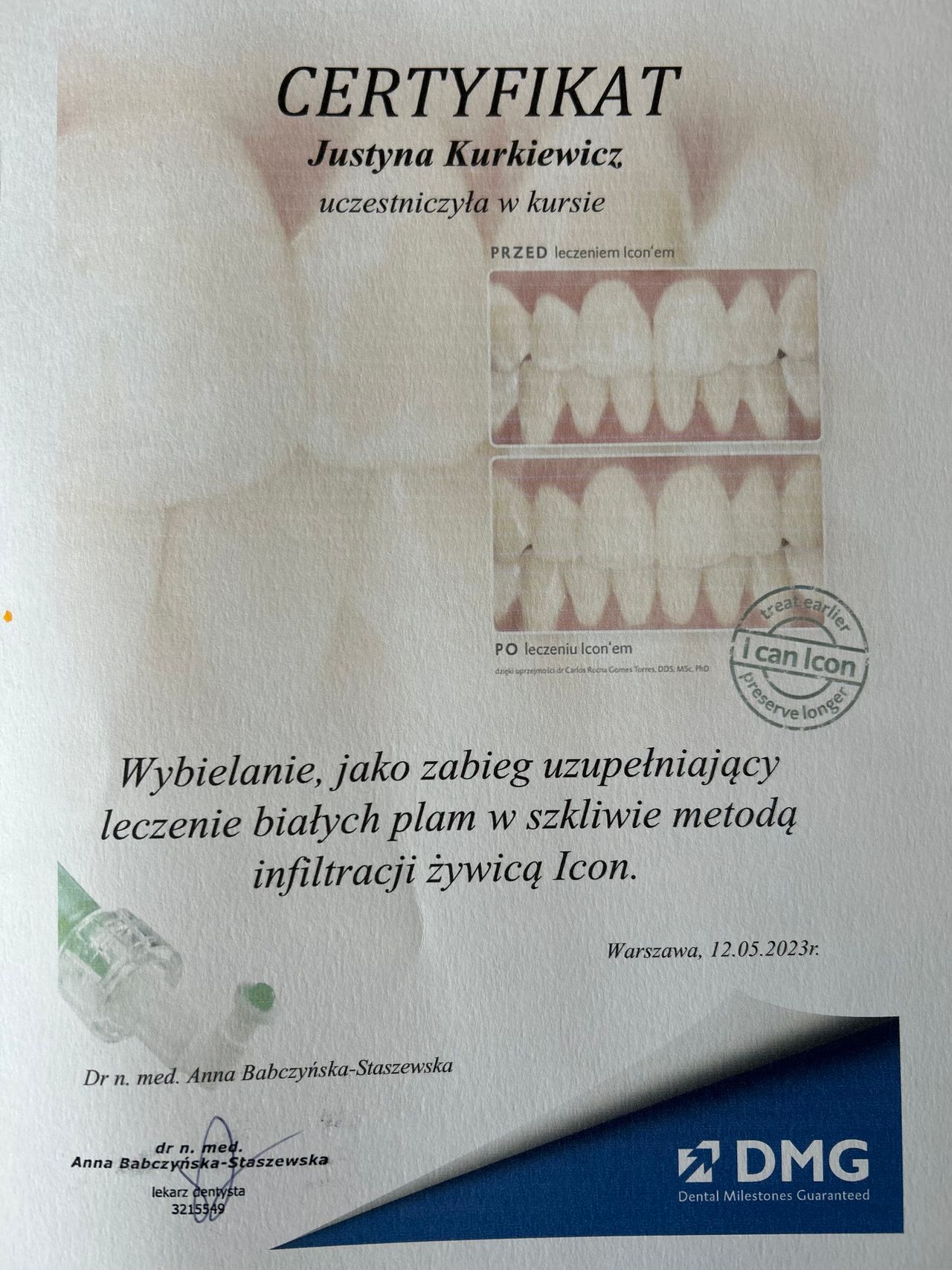 Jaki jest zakres porad oferowanych przez Justyna Kurkiewicz?Justyna Kurkiewicz to stomatolog dziecięcy. Na podstawie swojego doświadczenia i wykształcenia Justyna Kurkiewicz oferuje usługi takie jak: konsultacja stomatologiczna dzieci, Wizyta adaptacyjna dzieci, stomatologia dziecięca, Leczenie próchnicy u dzieci.
