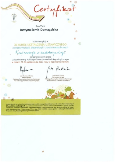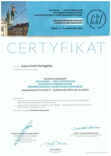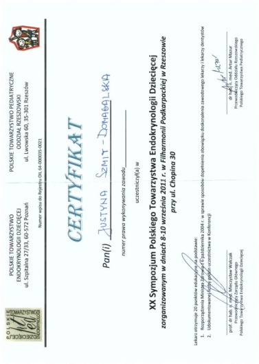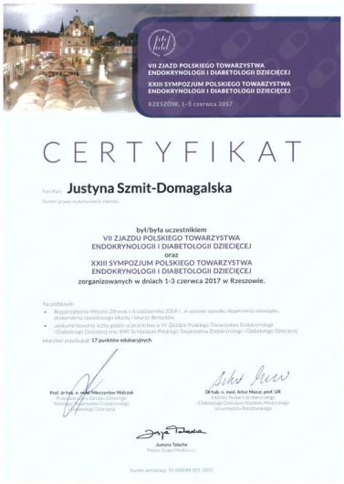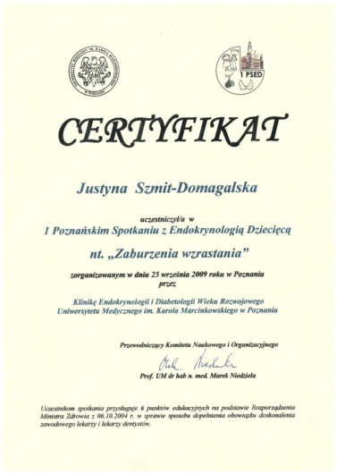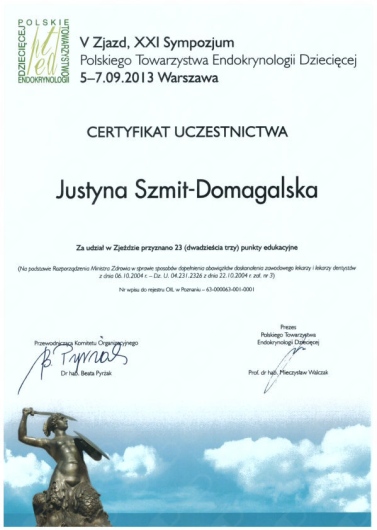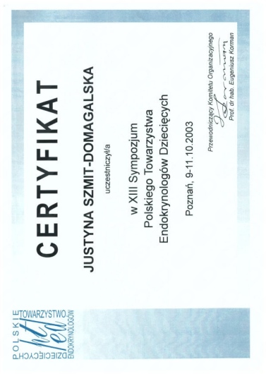 Jaki jest zakres porad oferowanych przez Justyna Magdalena Szmit-Domagalska?Justyna Magdalena Szmit-Domagalska to endokrynolog dziecięcy, endokrynolog. Na podstawie swojego doświadczenia i wykształcenia Justyna Magdalena Szmit-Domagalska oferuje usługi takie jak: konsultacja pediatryczna, konsultacja endokrynologiczna dzieci.