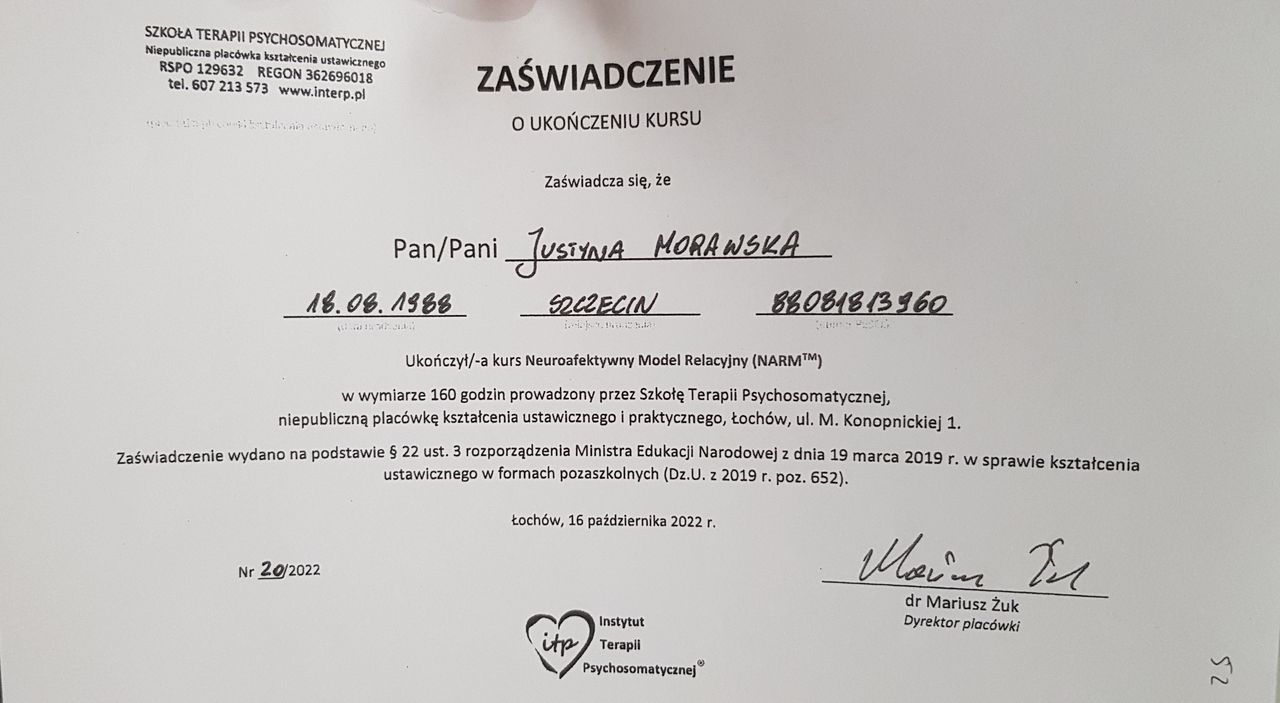 Potwierdzenie przelewu proszę przesłać na adres : terapiaintegria@gmail.com
