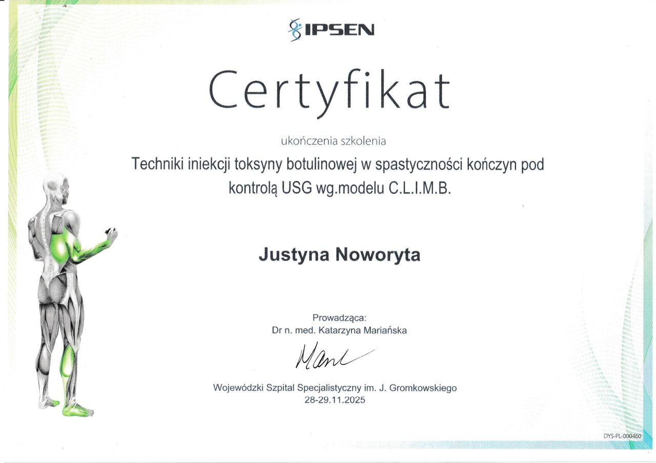 Czy Justyna Noworyta przyjmuje online, bez konieczności pojawiania się w placówce?Tak, Justyna Noworyta oferuje konsultacje online. Wybierz opcję „konsultacja online” przy umawianiu wizyty, a zobaczysz dostępne terminy.