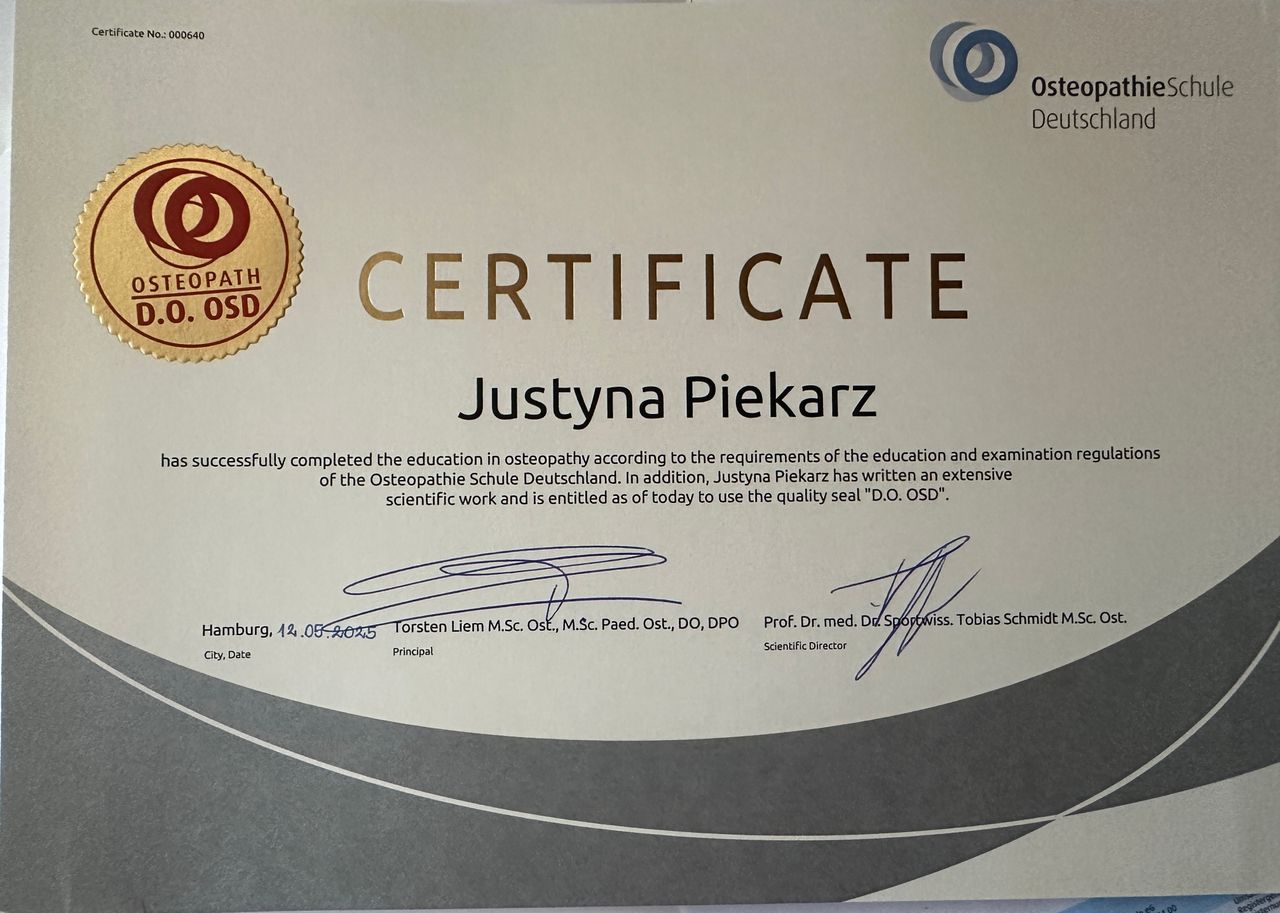 Bardzo polecam Panią Justynę. Odbyłam u niej pierwszą konsultację osteopatyczną. Jest osobą życzliwą, pytała dokładnie o moje objawy oraz zapoznała się z przyniesioną przeze mnie dokumentacją. Badanie i wstępny zabieg, pomimo odczucia bólu wynikającego z napięć były przyjazne i spokojne.