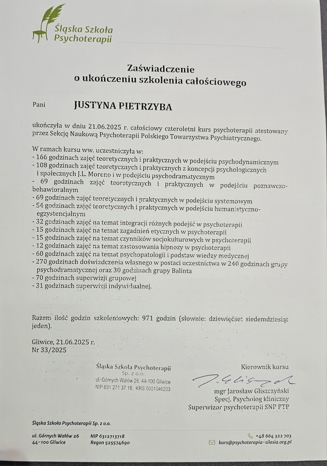 Swoją pracę poddaję regularnej superwizji w certyfikowanych superwizorów.