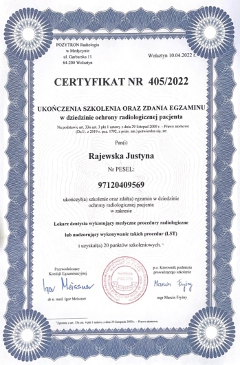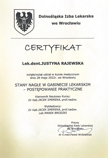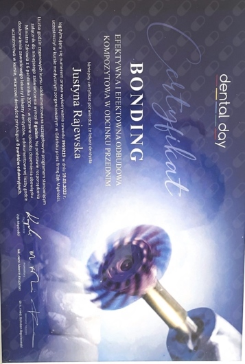 Przez cały okres swojej pracy zawodowej systematycznie poszerza swoją wiedzę i umiejętności, biorąc udział w licznych konferencjach naukowych, szkoleniach i warsztatach praktycznych, poznając najnowsze standardy i techniki pracy w stomatologii.