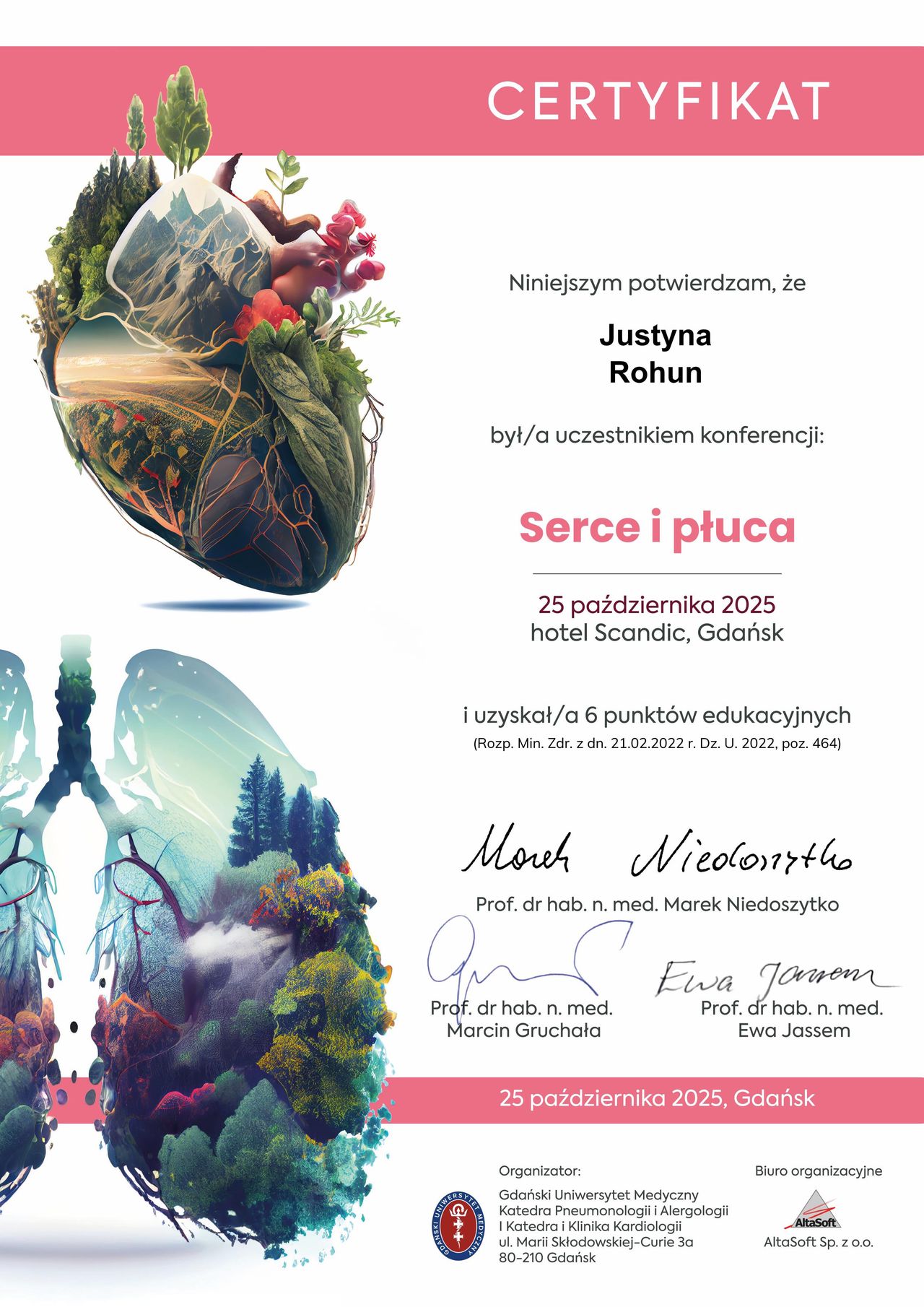Regularnie poszerzam swoje kompetencje zawodowe poprzez udział w specjalistycznych kursach, szkoleniach oraz konferencjach krajowych i międzynarodowych, w szczególności z zakresu echokardiografii, elektrokardiografii i elektroterapii serca. Jestem członkinią Polskiego oraz Europejskiego Towarzystwa Kardiologicznego, Asocjacji Echokardiografii oraz Asocjacji Rytmu Serca PTK.