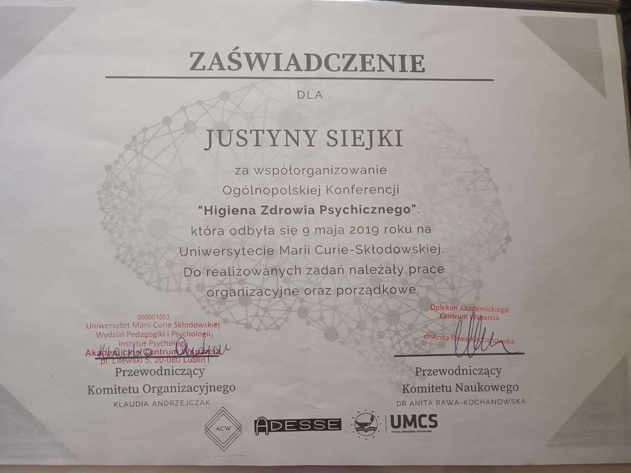 Mgr Justyna Siejka – psycholożka pracująca w nurcie poznawczo-behawioralnym