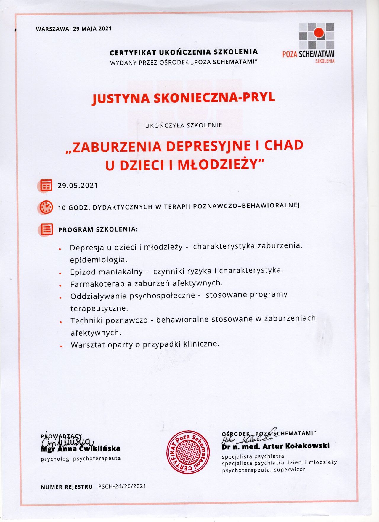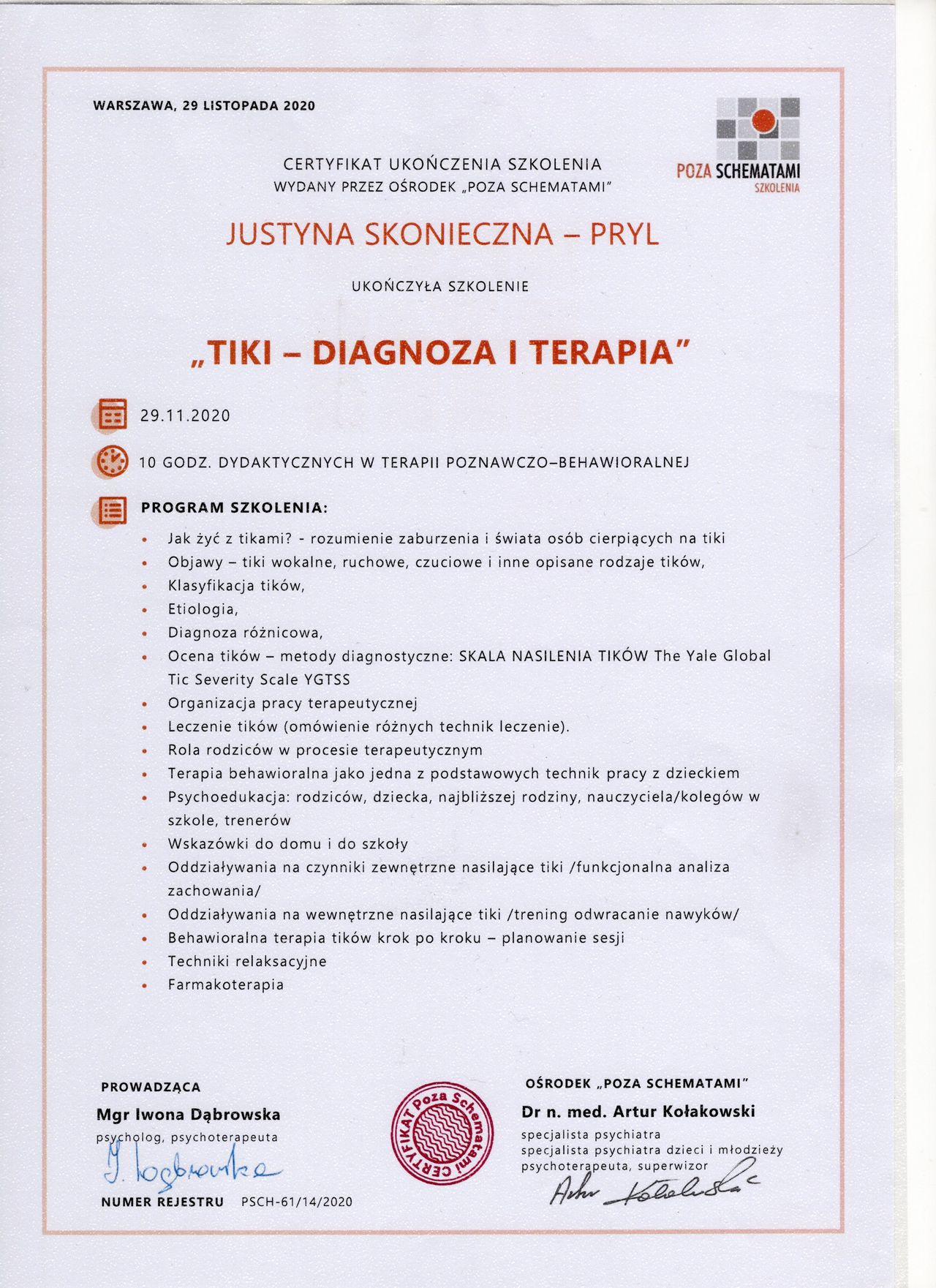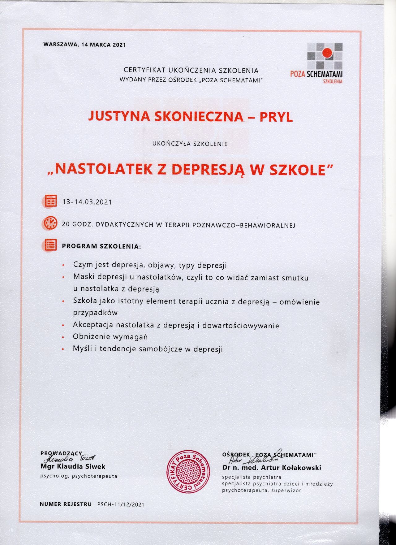 Psychoterapeuta certyfikowany,