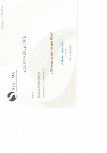 Moim szczególnym zainteresowaniem aktualnie cieszą się rzadko stosowane terapie psychosomatyczne jako m.in. wspomaganie w terapii psychiatrycznej, psychoterapii oraz obniżenie odpowiedzi układu nerwowego na stres. Terapia ta ma szerokie zastosowanie przy problemach ze snem, apetytem, trudnościach z pamięcią i koncentracją, a także równoważące przy chorobach autoimmunologicznych. Często stosuję ją u uczniów, którzy mają problemy w trudnościach z nauką, dysleksją lub są przeciążone szkolną nauką. Jest to terapia bazująca na mobilizacjach na kościach czaszki, a także neuromobilizacjach w miejscach powierzchownego przebiegu nerwów, które wykazują się zaburzeniem. Rzadko pacjenci odczuwają dyskomfort podczas tej terapii, raczej wskazują ją jako jedną z łagodniejszych.