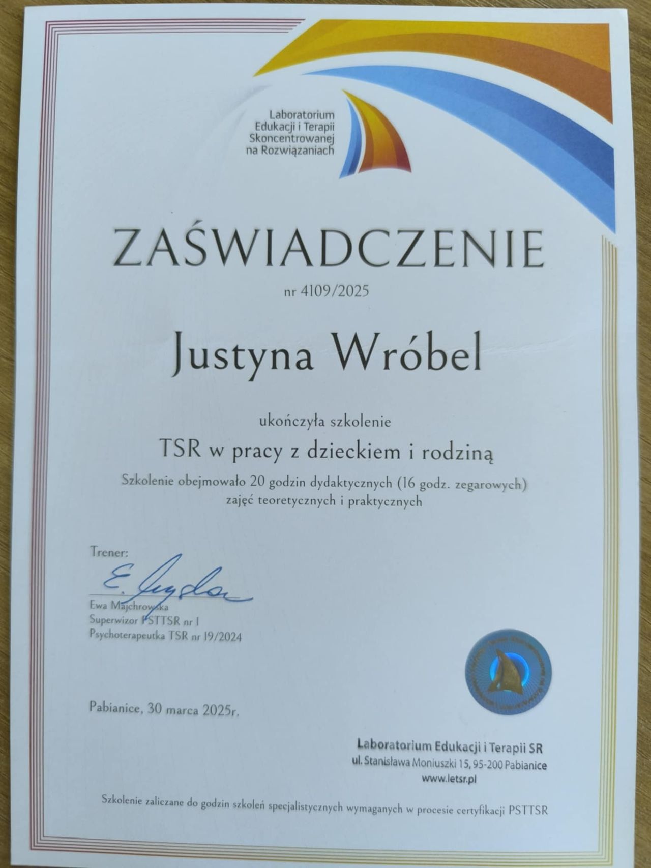 Super podejście, pełen profesjonalizm, zaangażowanie, bardzo przyjazna atmosfera. Pani Justyna doskonale prowadzi terapię.