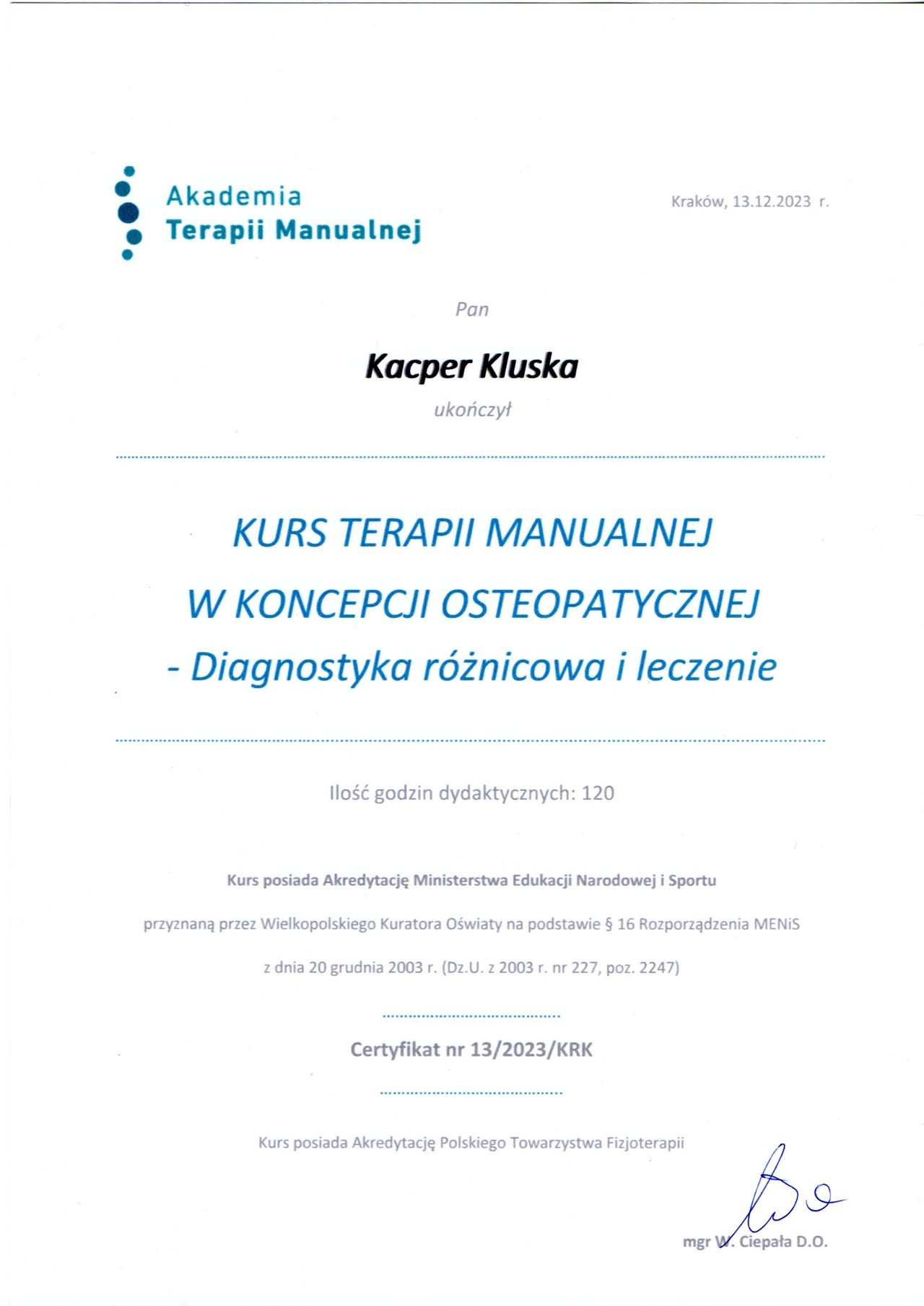 - Certyfikowany Terapeuta Manualny