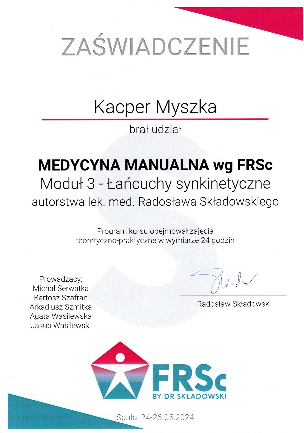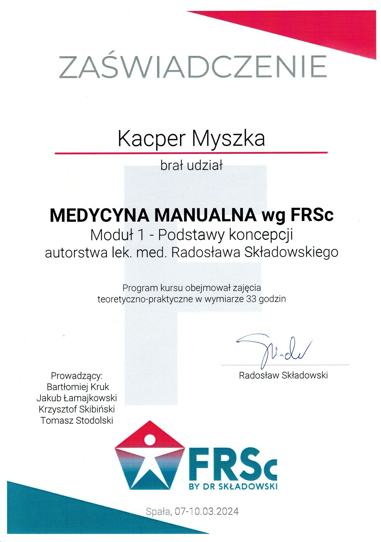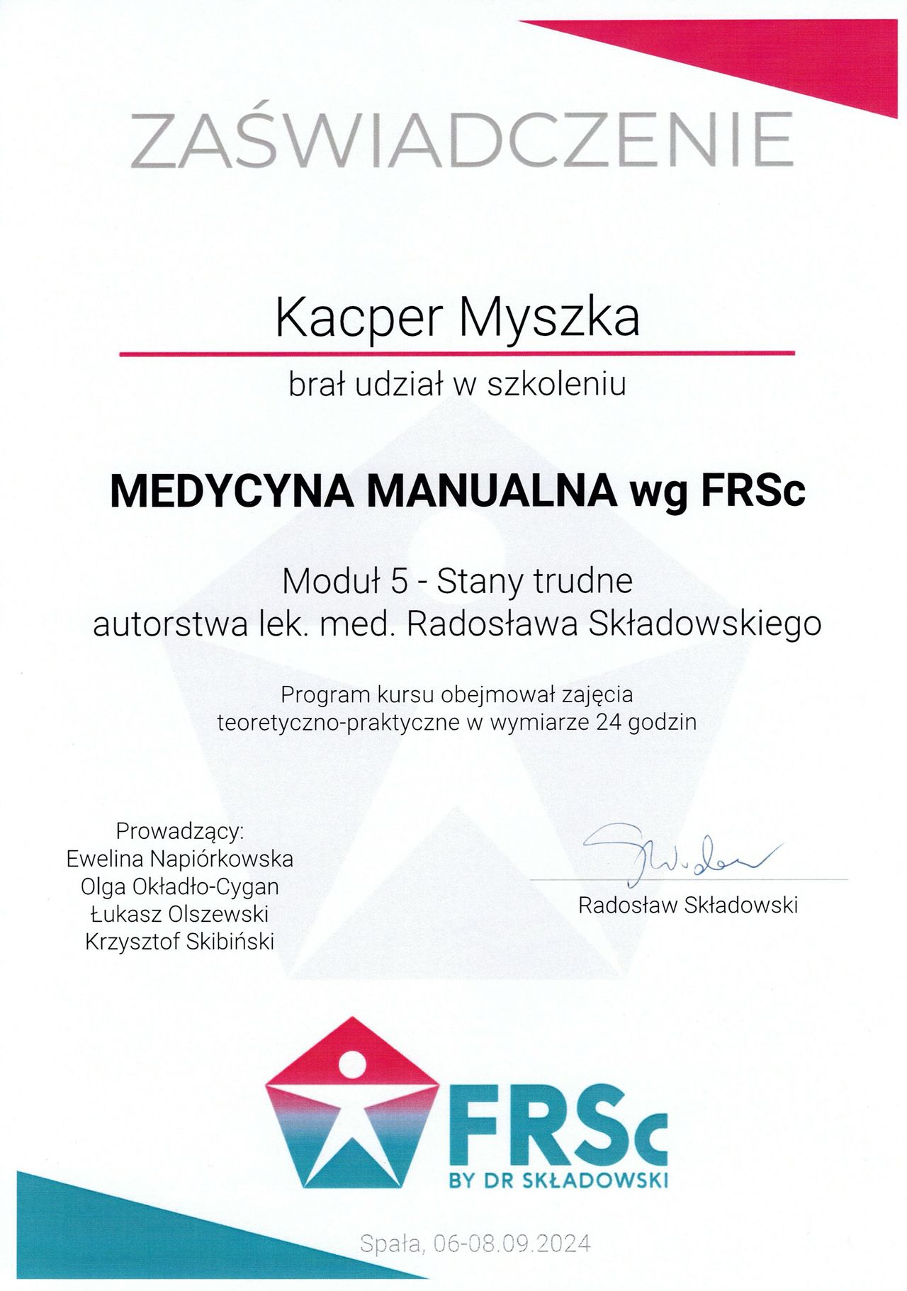 • 5-cio modułowe szkolenie z Medycyny Manualnej wg. lek. Radosława Składowskiego:
