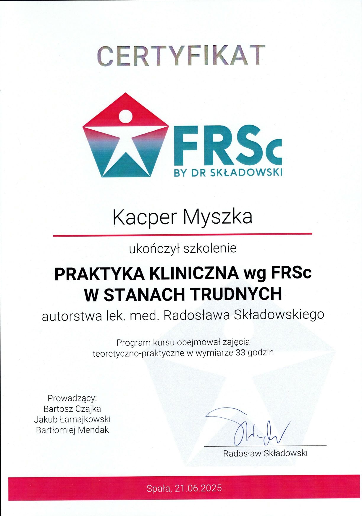 • Praktyka kliniczna w stanach trudnych wg FRSc