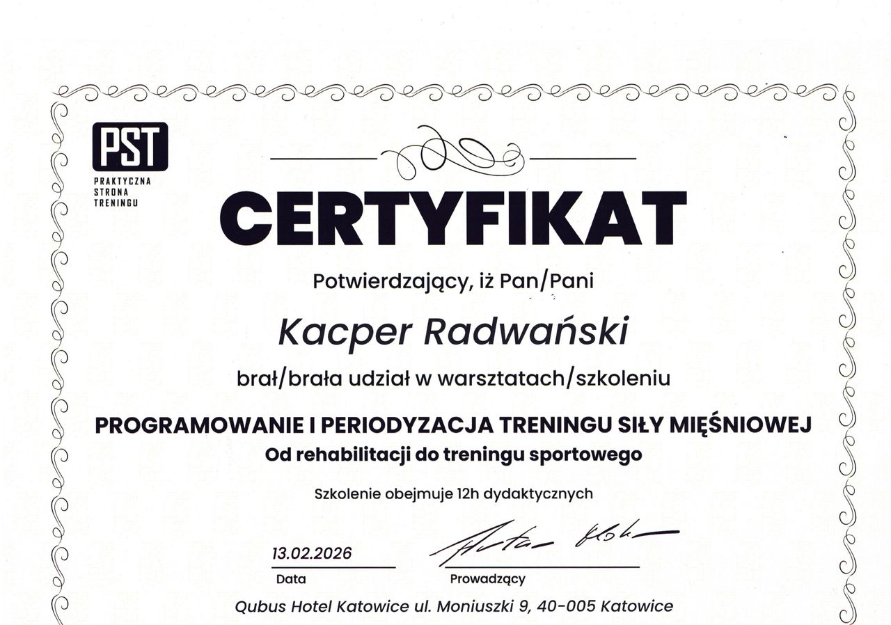 Pan Kacper bardzo mi pomógł z bólem kręgosłupa. Profesjonalne podejście, dokładny wywiad i skutecznie dobrane ćwiczenia. Serdecznie polecam.