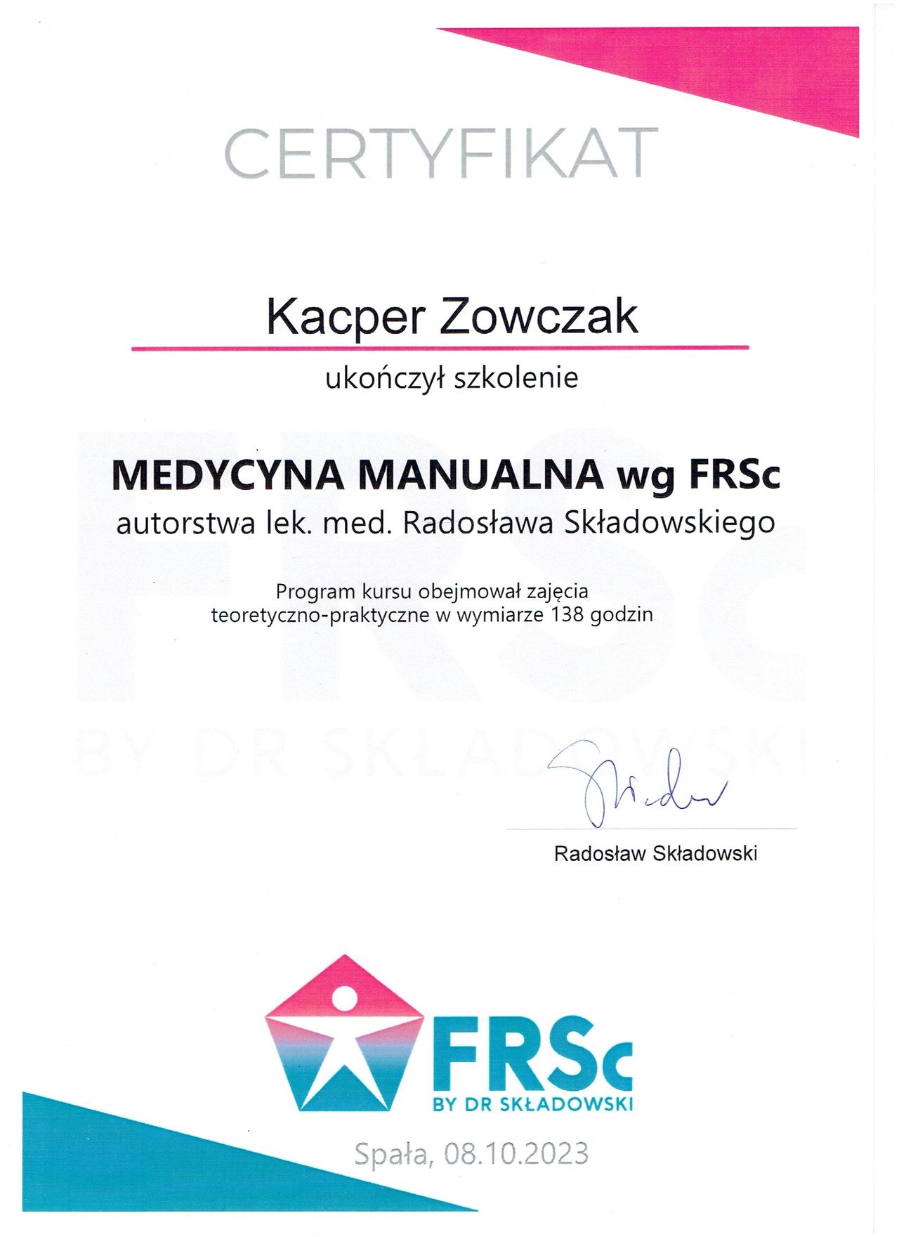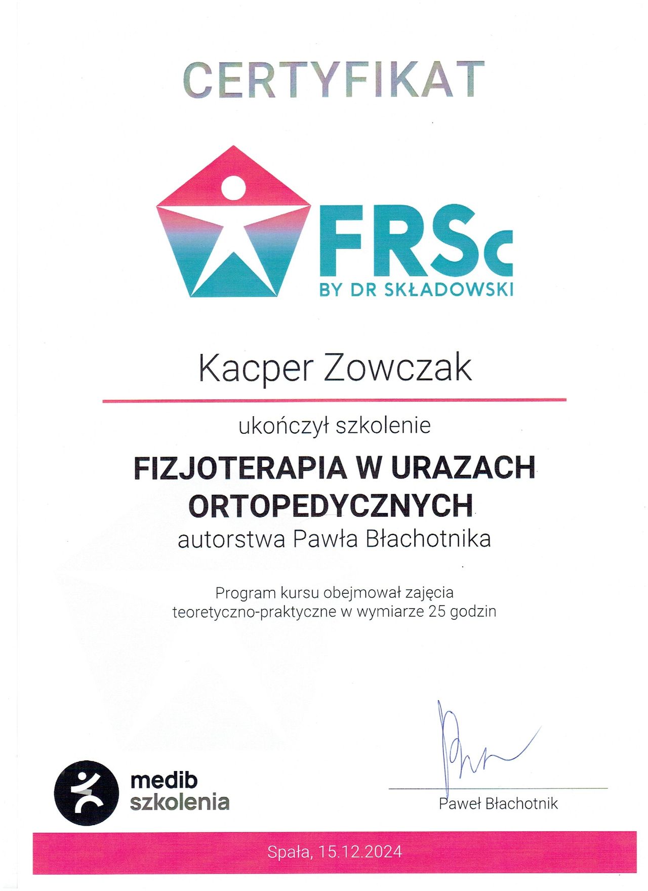 Jestem doświadczonym fizjoterapeutą specjalizującym się w pracy z pacjentami bólowymi, oraz po urazach i operacjach ortopedycznych, w tym po rekonstrukcji więzadła krzyżowego przedniego (ACL) oraz innych kontuzjach sportowych (skręcenia, zwichnięcia, złamania). Pomagam osobom wracać do pełnej sprawności i aktywności fizycznej, prowadząc kompleksową terapię dostosowaną do indywidualnych potrzeb.