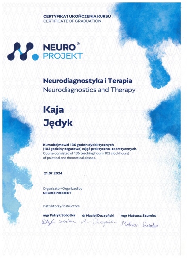 Czy Kaja Jędyk przyjmuje online, bez konieczności pojawiania się w placówce?Nie, w tym momencie Kaja Jędyk nie oferuje konsultacji online.