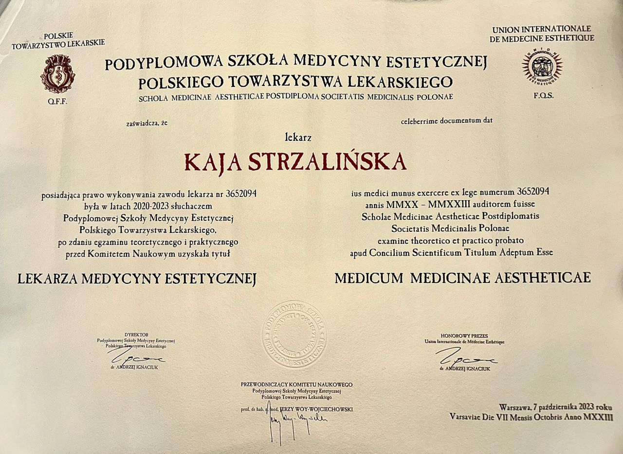Jestem absolwentką wydziału Collegium Medicum w Bydgoszczy Uniwersytetu im.Mikołaja Kopernika w Toruniu oraz Podyplomowej Szkoły Medycyny Estetycznej POLSKIEGO TOWARZYSTWA LEKARSKIEGO w Warszawie.