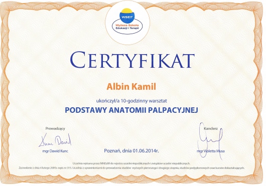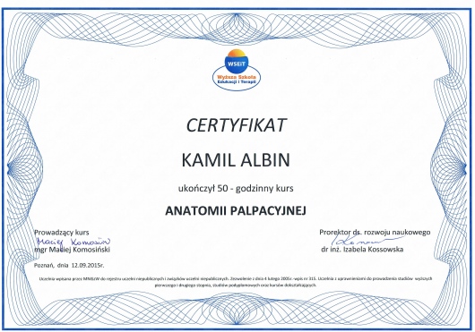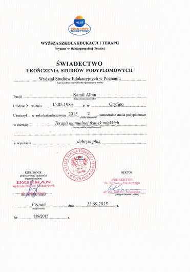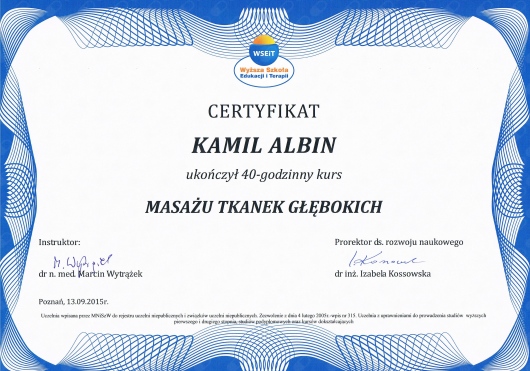 W kilku ostatnich latach pracy w związku ze zdobytymi umiejętnościami skupiałem swoją uwagę na terapii manualnej tkanek miękkich, masażu głębokim, terapii punktów spustowych, rozluźnianiu mięśniowo-powięziowym i innych. Swoje doświadczenie zdobyłem pracując z pacjentami cierpiącymi na różne schorzenia, głownie z zespołami bólowymi, przeciążeniowymi kręgosłupa oraz z zespołami bólowymi i pourazowymi stawów barkowych, kolanowych i skokowych. Mam również doświadczenie w pracy z pacjentami ze schorzeniami neurologicznymi tj. po udarze mózgu, z chorobą Parkinsona, SM itp., zaś w latach od 2016 – 2020 zdobyłem doświadczenie w pracy z pacjentami ze schorzeniami kardiologicznymi.