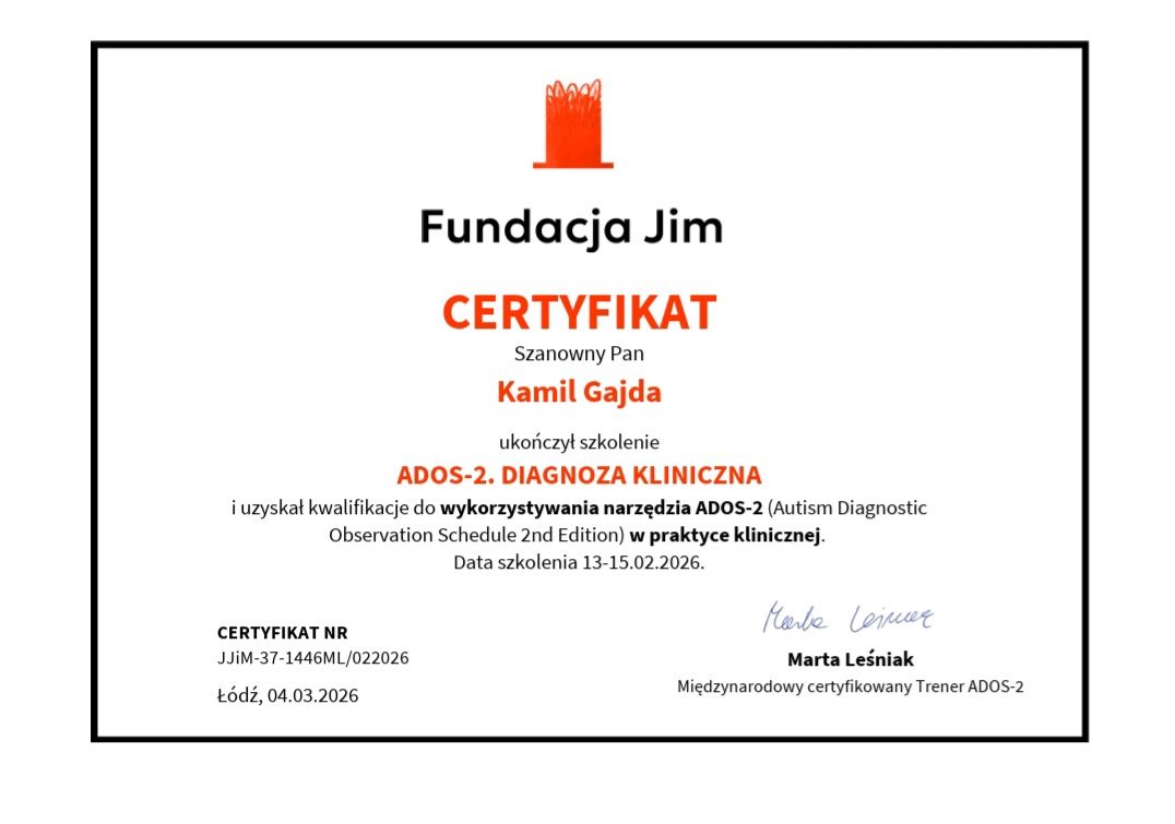 • Kamil Gajda - Psycholog Warszawa Mokotów i Online | ADHD, ASD • Diagnoza autyzmu •