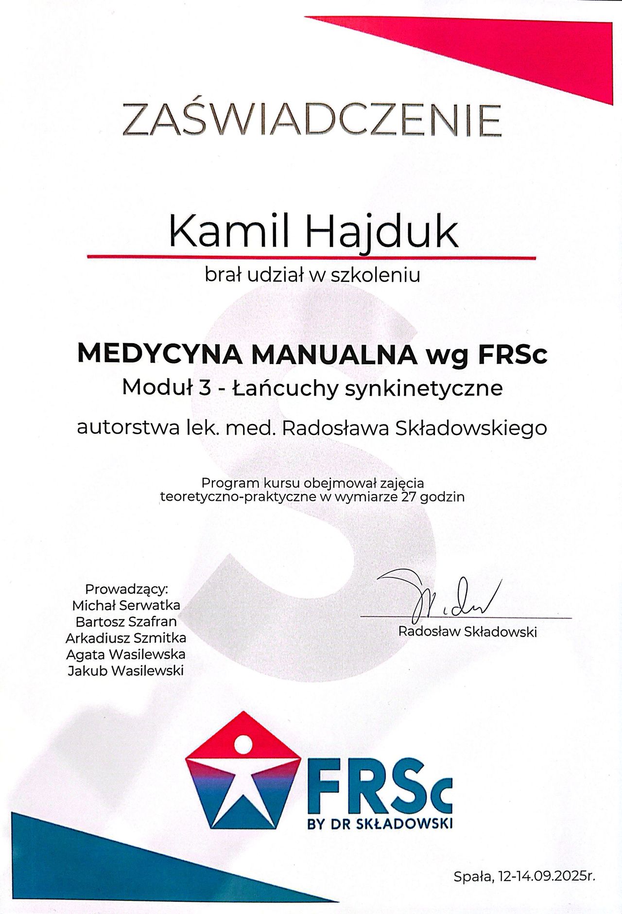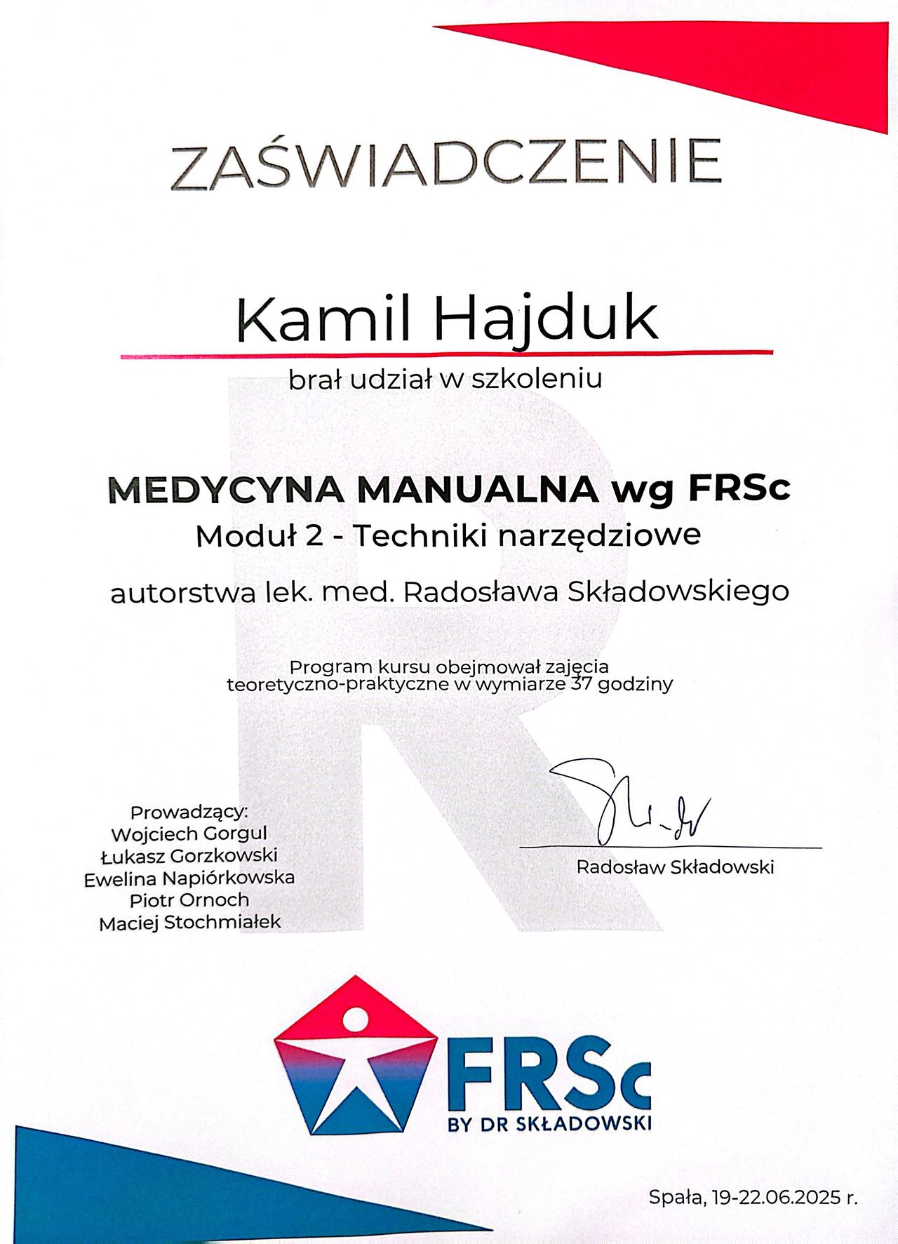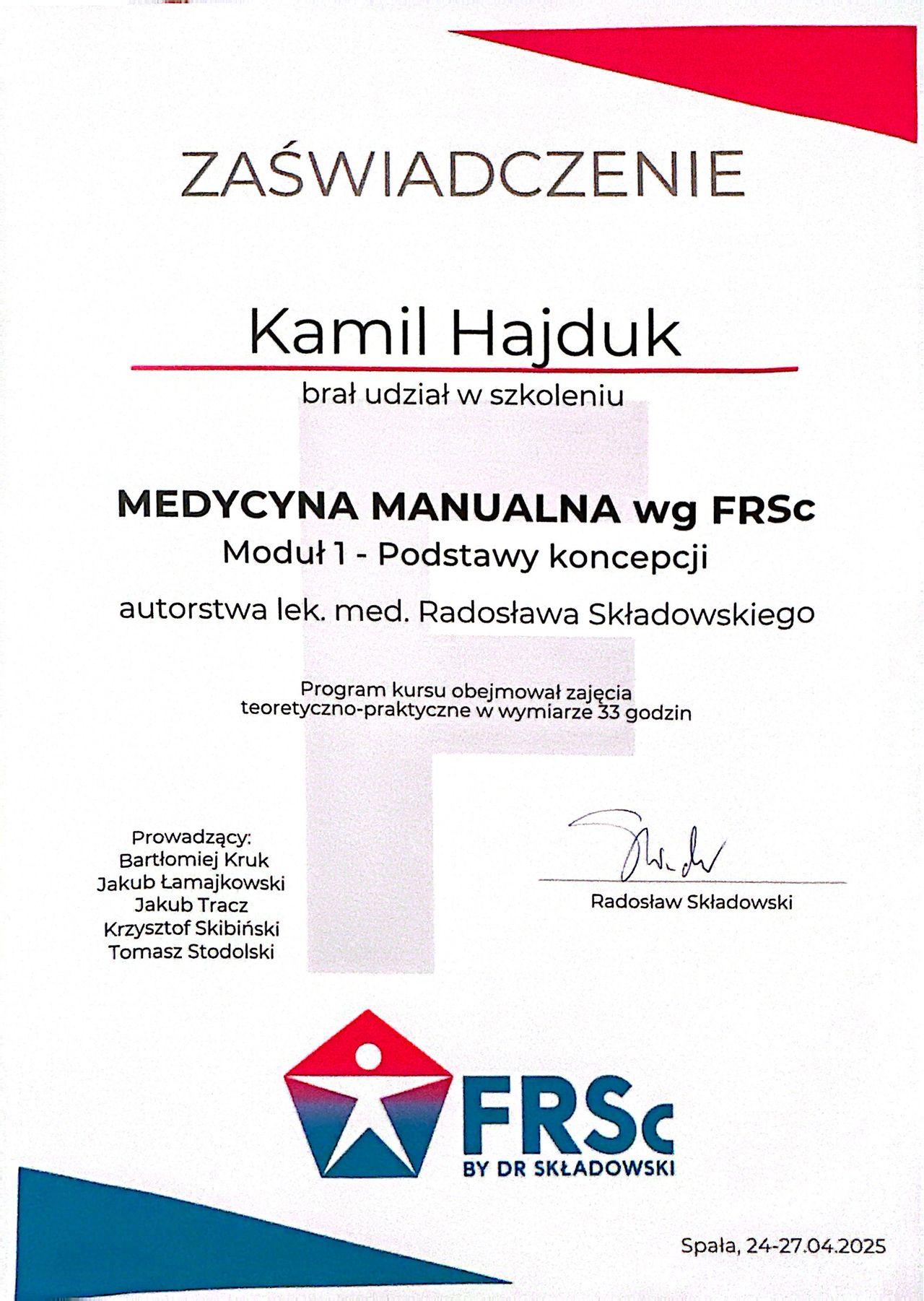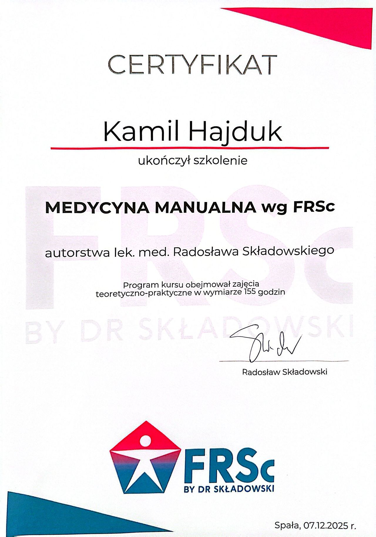Pan Kamil Hajduk to specjalista z ogromną wiedzą i doświadczeniem. Zdiagnozował przyczynę mojego bólu pleców już na pierwszej wizycie i zaproponował skuteczną terapię. Dzięki jego pomocy wróciłem do pełnej sprawności. Serdecznie polecam!