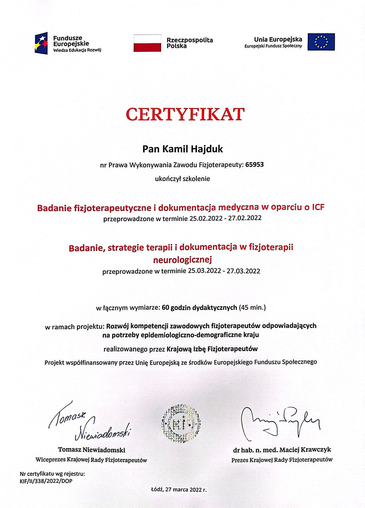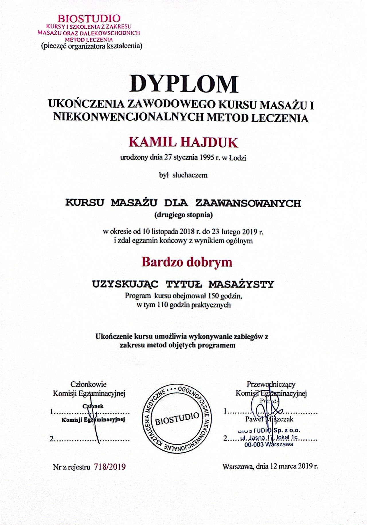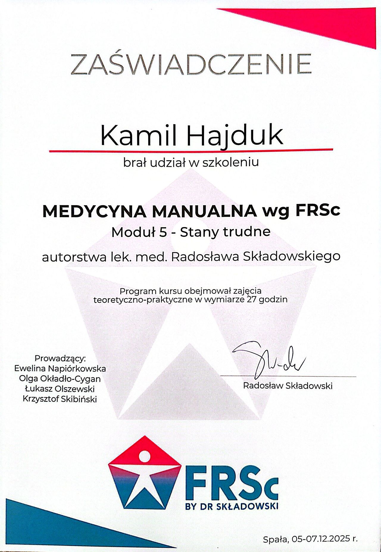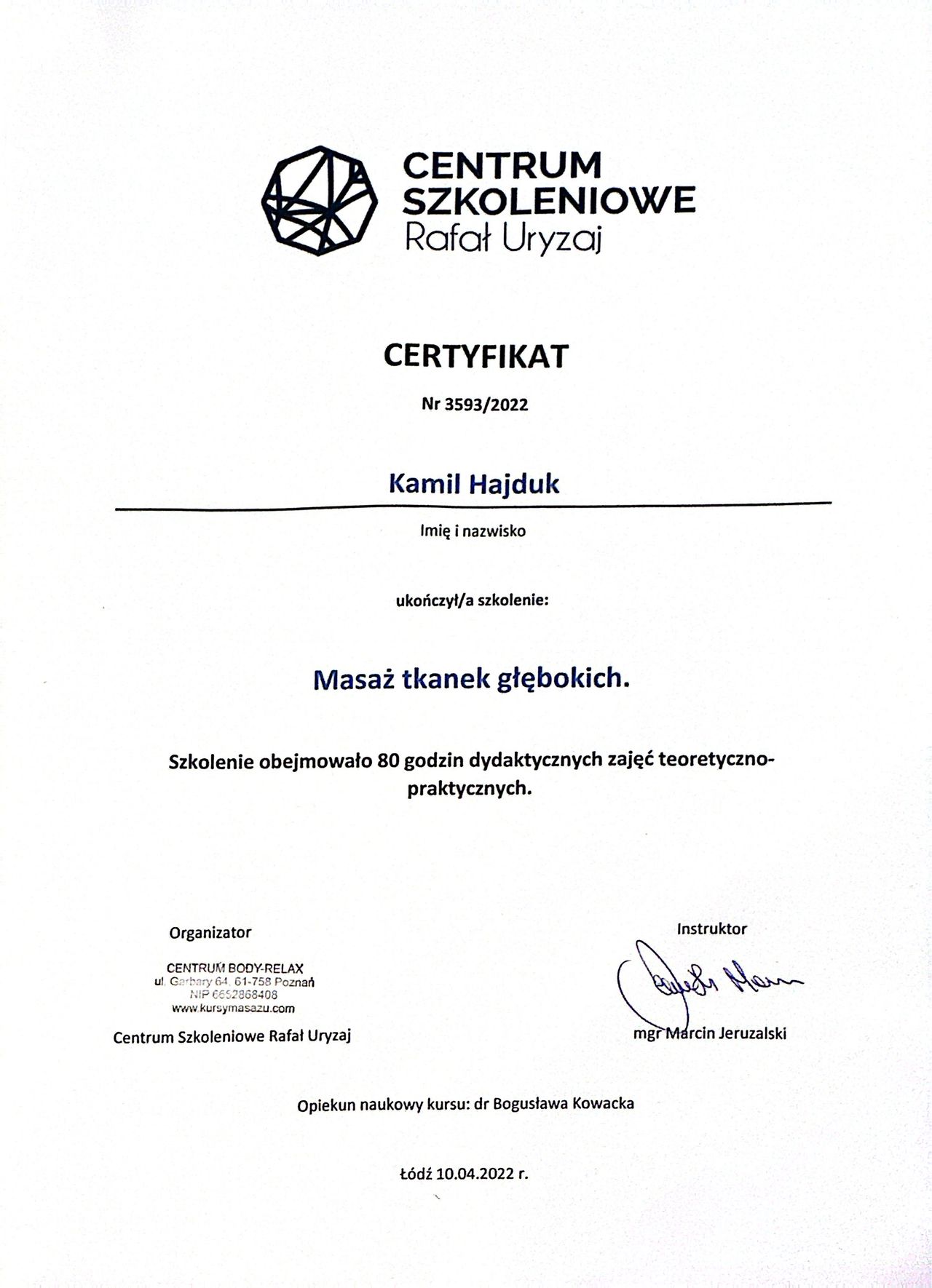 Pan Kamil Hajduk to specjalista z ogromną wiedzą i doświadczeniem. Zdiagnozował przyczynę mojego bólu pleców już na pierwszej wizycie i zaproponował skuteczną terapię. Dzięki jego pomocy wróciłem do pełnej sprawności. Serdecznie polecam!