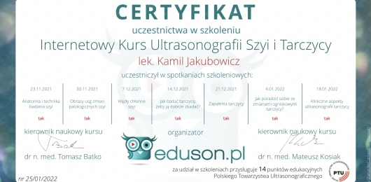 USG jamy brzusznej, piersi, tarczycy, tkanki podskórnej, węzłów chłonnych, ślinianek, jąder, biopsja.