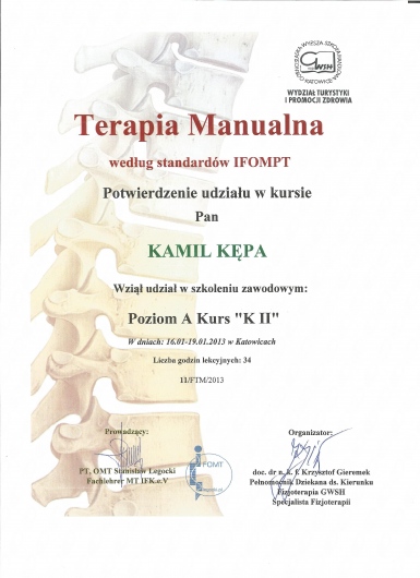 2013 Terapia Manualna wg międzynarodowych standardów IFOMPT,Moduł IV (KII).