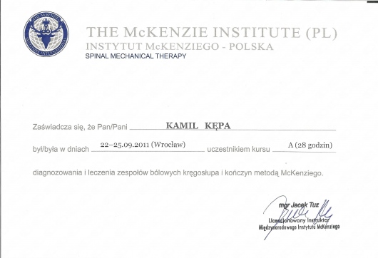 (Prowadzący: Licencjonowany Instruktor Międzynarodowego Instytutu McKenziego mgr Jacek Tuz)