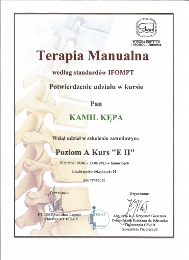 2012 Terapia Manualna wg międzynarodowych standardów IFOMPT, Moduł II (EII).