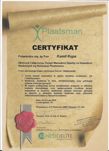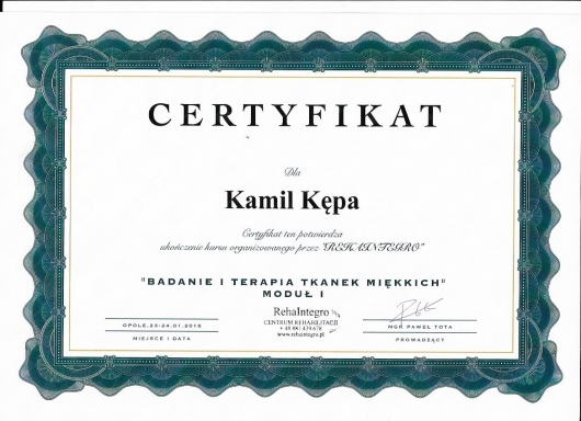 Jaki jest zakres porad oferowanych przez Kamil Kępa?Kamil Kępa to fizjoterapeuta. Na podstawie swojego doświadczenia i wykształcenia Kamil Kępa oferuje usługi takie jak: konsultacja fizjoterapeutyczna, taping (plastrowanie), ćwiczenia korekcyjne, masaż, terapia mięśniowo-powięziowa, rehabilitacja ortopedyczna, masaż tkanek głębokich, masaż klasyczny, rehabilitacja sportowców, Terapia tkanek miękkich.