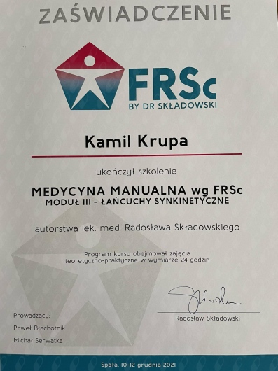 Pracuję z pacjentami po operacjach, osobami trenującymi sport na poziomie od amatorskiego do zawodowego oraz z pacjentami cierpiącymi z powodu bólu. W terapii wykorzystuję elementy terapii manualnej oraz treningu, aby skutecznie przywracać sprawność i komfort ruchu. Dla pełniejszej i trafniejszej diagnostyki wykorzystuję również ultrasonografię (USG).