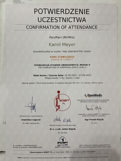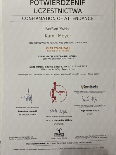 Zakończyłam właśnie serię zabiegów rehabilitacyjnych u Pana Kamila i z czystym sumieniem polecam każdemu, kto szuka skutecznej rehabilitacji.