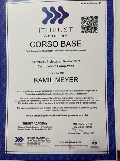 Już podczas pierwszej konsultacji u Pana Kamila okazało się, że wcześniejsza diagnoza była błędna i źródło bólu zostało wcześniej niewłaściwie zlokalizowane. Odpowiednio dobrana terapia manualna szybko przyniosła efekty — napięcia zostały zredukowane, a ból ustąpił. Obecnie mogę swobodnie wykonywać ćwiczenia, które wcześniej były nie do przejścia przez ograniczony zakres ruchu.