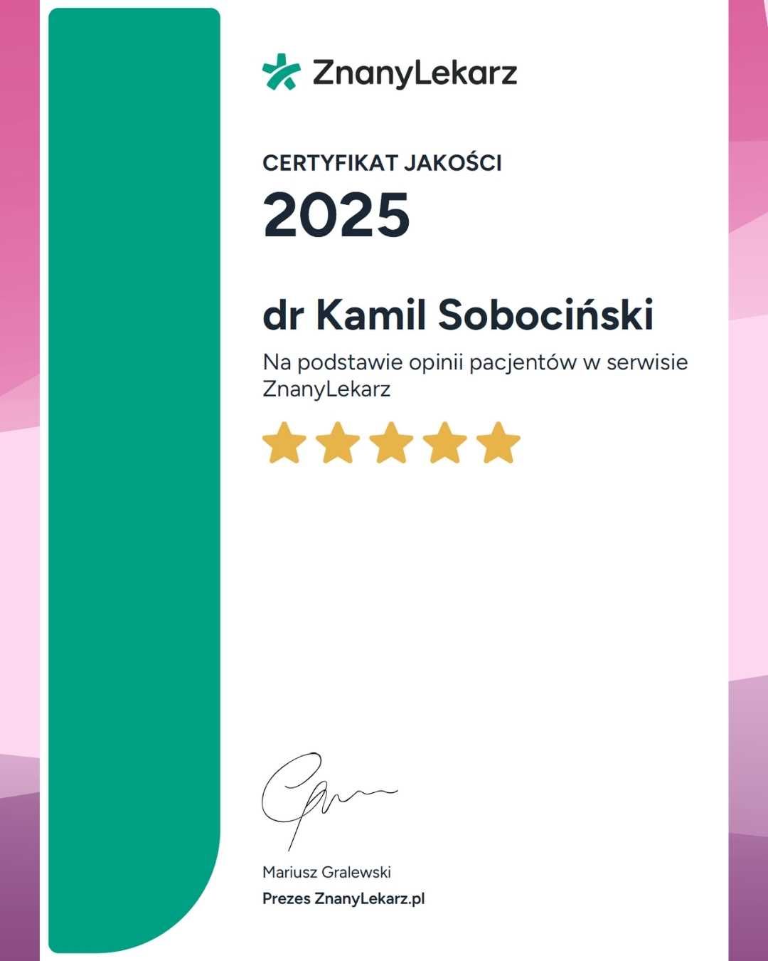 Z całego serca polecam Pana Doktora Kamila Sobocińskiego, to niezwykle kompetentny i zaangażowany lekarz. Udzielił mi odpowiedzi na każde zadane pytanie, a także okazał wsparcie psychiczne przed, w trakcie i po zabiegu. Czułam się kompleksowo zaopiekowania i poinformowana. Serdecznie dziękuję za wspaniałe połączenie empatii i kompetencji oraz stworzenie tak przyjaznej atmosfery w trakcie i po zabiegu. Jestem wdzięczna i mogę polecić Pana Doktora każdej kobiecie szukającej wsparcia medycznego. Doktor to specjalista godny zaufania i polecenia.