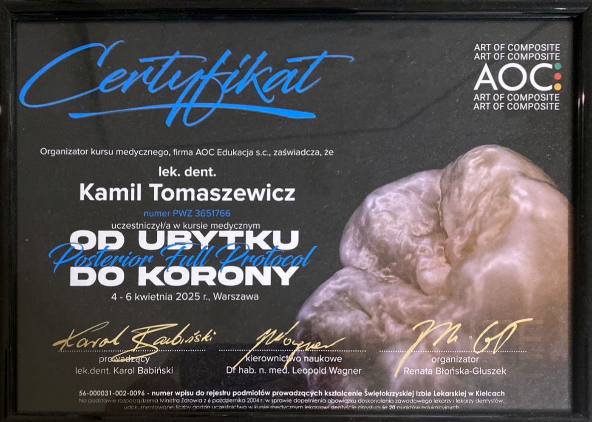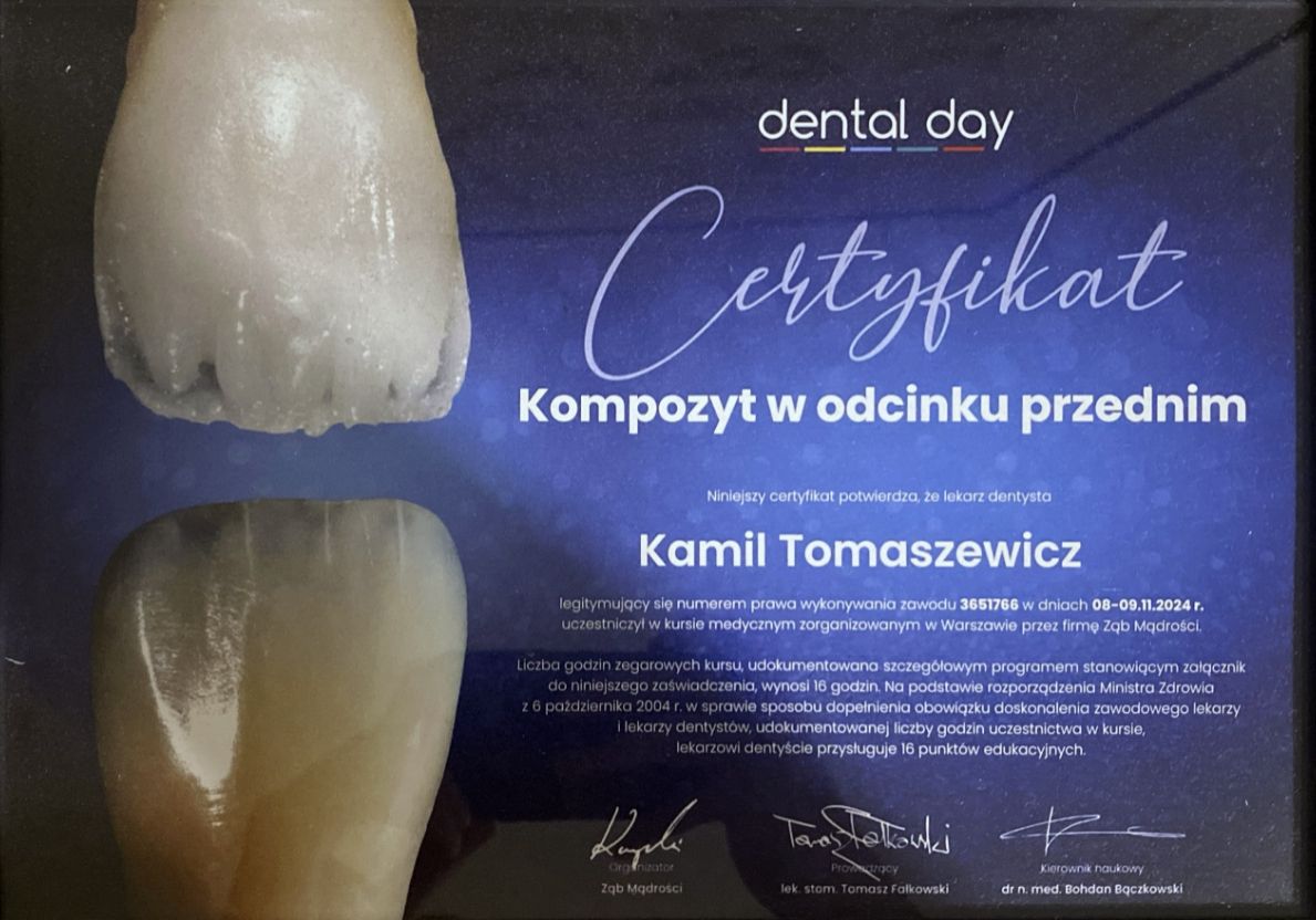 Pan Kamil Tomaszewicz to świetny specjalista z indywidualnym podejściem do pacjenta. Wizyta przebiegła w spokojnej i komfortowej atmosferze, a leczenie było bezbolesne i dokładne. Widać duże doświadczenie i zaangażowanie.