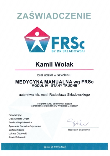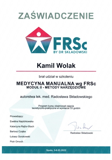 Każdą wizytę rozpoczynam od dokładnego wywiadu, aby poznać historię Twoich dolegliwości i ustalić, co mogło być ich przyczyną. W razie potrzeby wykonuję badanie USG RUSI, które pozwala ocenić stan tkanek w czasie rzeczywistym. Następnie przeprowadzam szczegółowe badanie fizykalne, aby zebrać pełny obraz sytuacji i precyzyjnie zaplanować terapię dopasowaną do Twoich potrzeb.