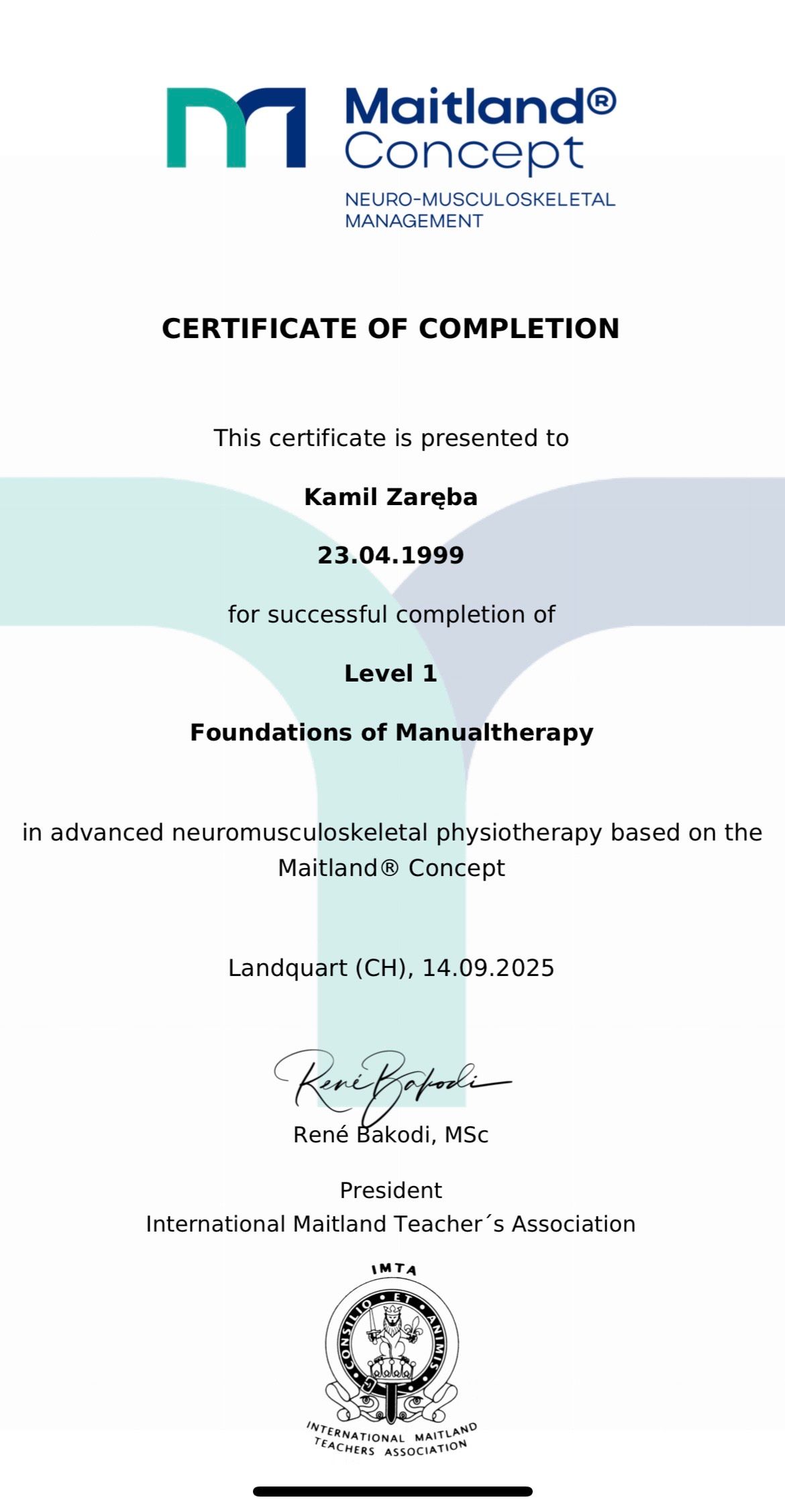 Terapia manualna wg koncepcji Maitland (regularnie uczestniczę w kolejnych modułach),
