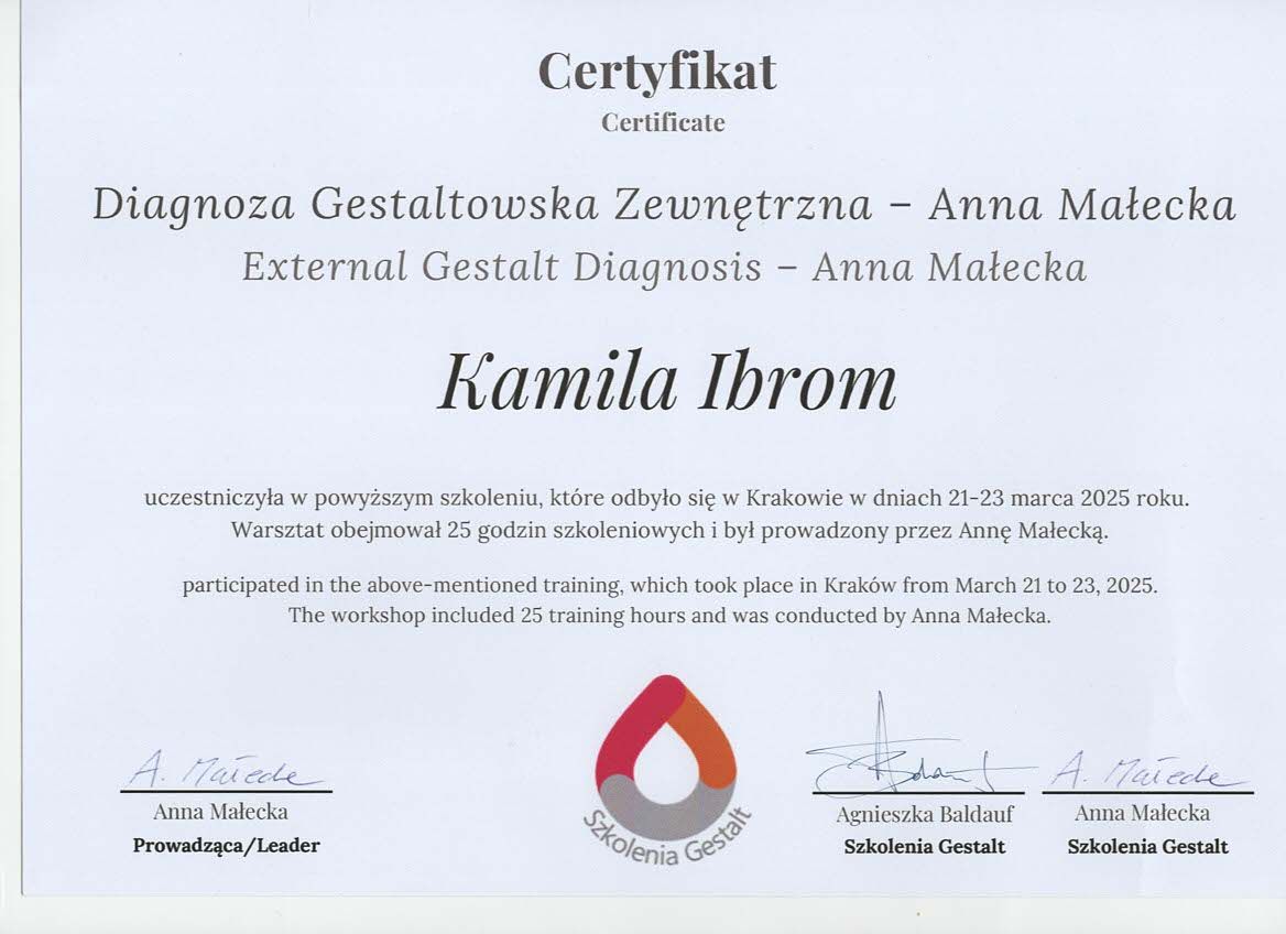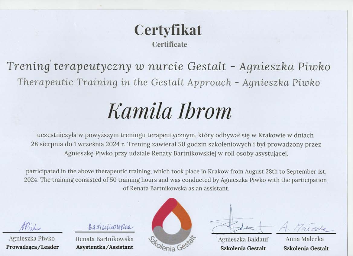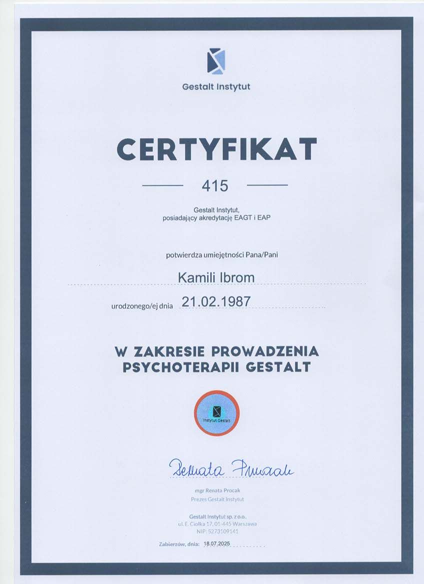 • Psychoterapia Gestalt Kamila Ibrom • psychoterapia indywidualna •