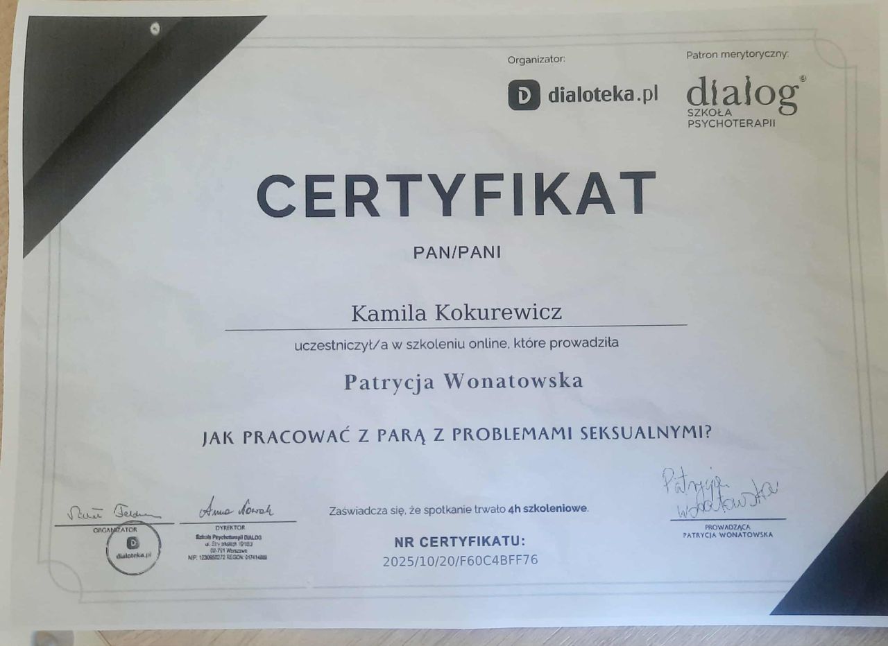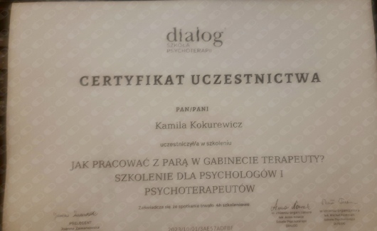 Czy Kamila Kokurewicz przyjmuje online, bez konieczności pojawiania się w placówce?Nie, w tym momencie Kamila Kokurewicz nie oferuje konsultacji online.