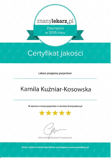 Kamila Kuźniar-Kosowska: co mówią pacjenci?102 osób dodało swoją opinię. Kamila Kuźniar-Kosowska ma średnią ocen 5 (na 5 gwiazdek).