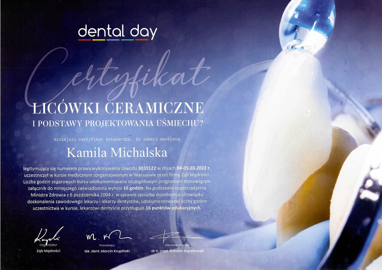 Jaki jest zakres porad oferowanych przez Kamila Michalska?Kamila Michalska to stomatolog. Na podstawie swojego doświadczenia i wykształcenia Kamila Michalska oferuje usługi takie jak: Konsultacja stomatologiczna, konsultacja do bondingu.
