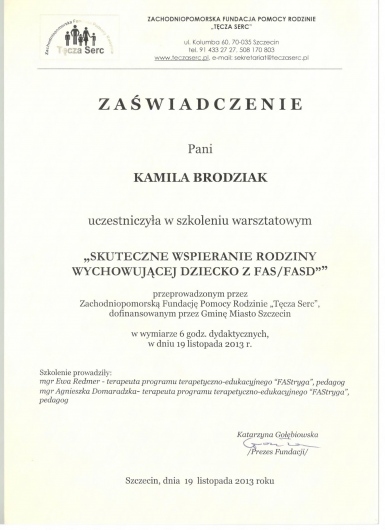 W celu uskutecznienia i holistycznego spojrzenia na problemy dotykające współczesne rodziny, współpracuję oraz uczestniczę w webinarach organizowanych przez Fundację Przyjaciele Martynki.
