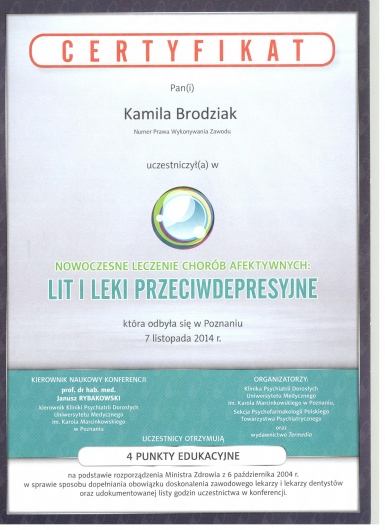 7.11.2014 r. Nowoczesne leczenie chorób afektywnych: Lit i leki przeciwdepresyjne (Poznań)