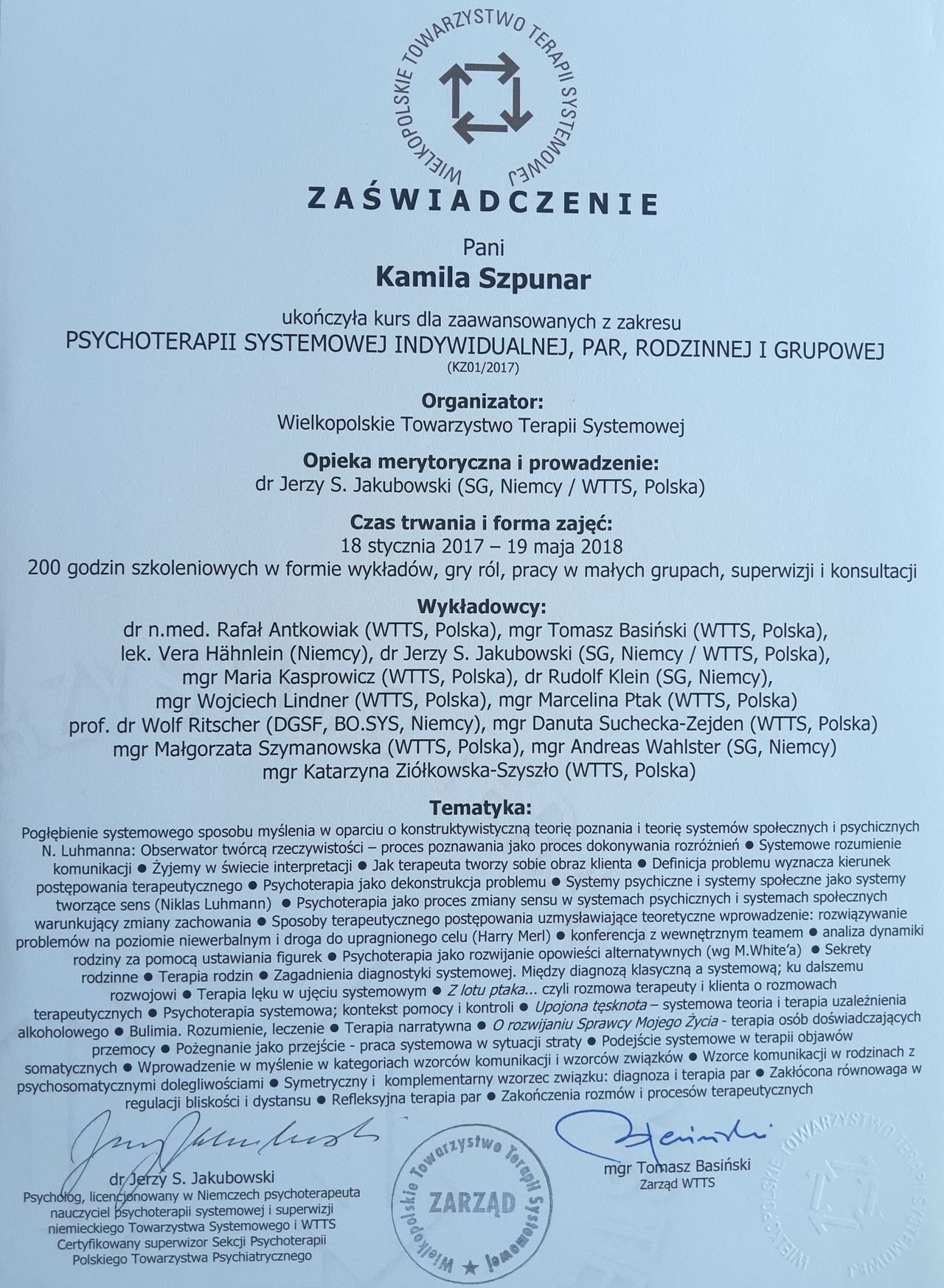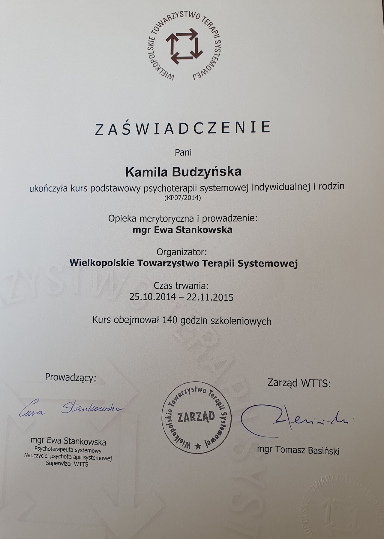 Jestem psychologiem, psychoterapeutą w nurcie systemowym, psychoterapeutą dzieci i młodzieży w nurcie Eriksonowskim. Prowadzę psychoterapię dorosłych, dzieci i młodzieży, a także par i rodzin.