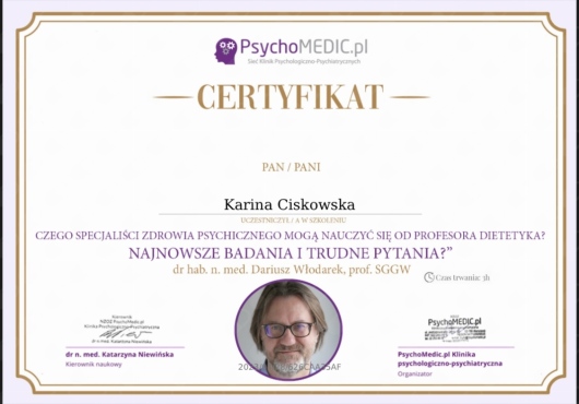 Czy Karina Ciskowska przyjmuje online, bez konieczności pojawiania się w placówce?Tak, Karina Ciskowska oferuje konsultacje online. Wybierz opcję „konsultacja online” przy umawianiu wizyty, a zobaczysz dostępne terminy.